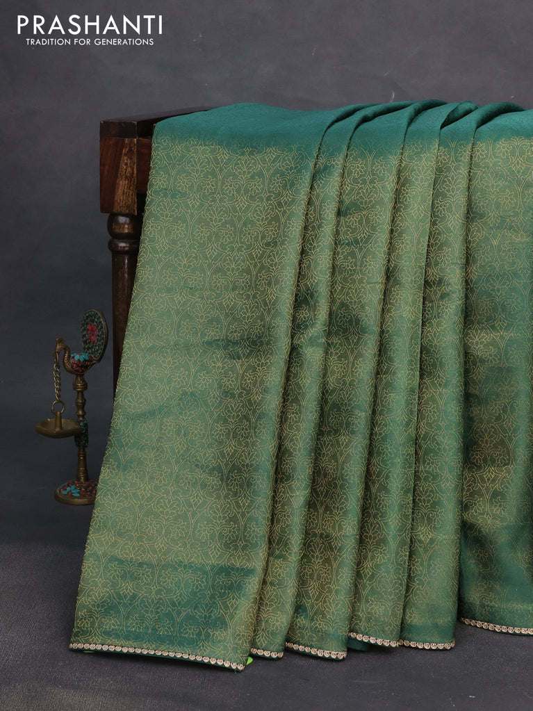 Banarasi semi crepe saree green with allover zari woven brocade weaves and lace work border