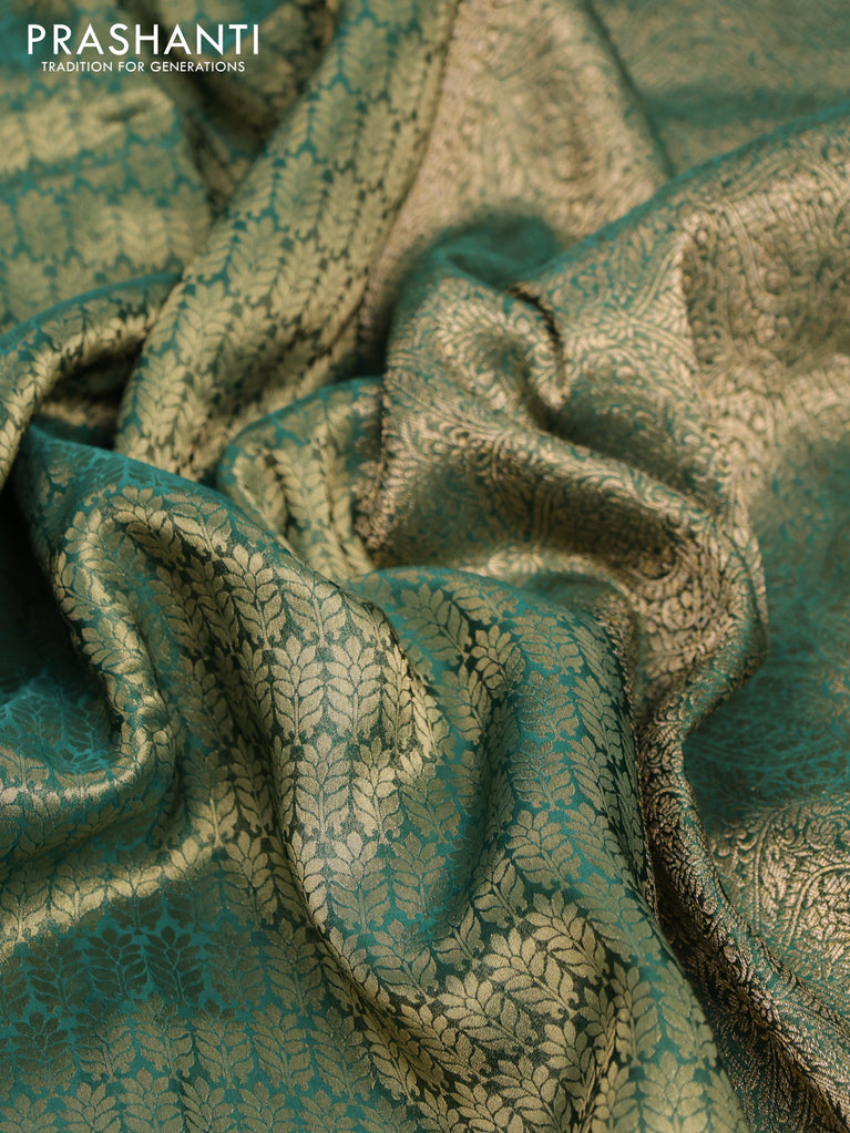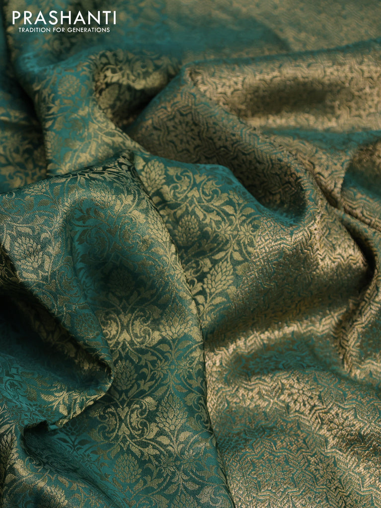 Banarasi semi crepe saree dual shade of peacock blue with allover zari woven brocade weaves and lace work border