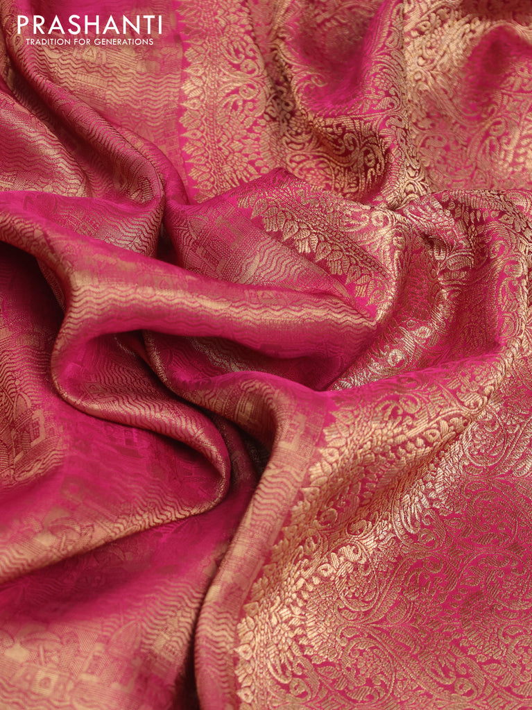 Banarasi semi crepe saree dark magenta pink with allover thread & zari woven brocade weaves and woven border