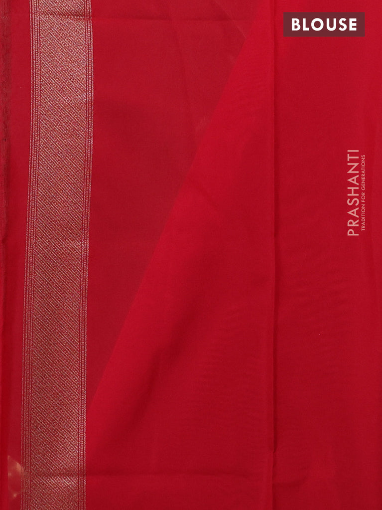 Banarasi semi katan saree red with silver & gold zari woven buttas and rich zari woven border