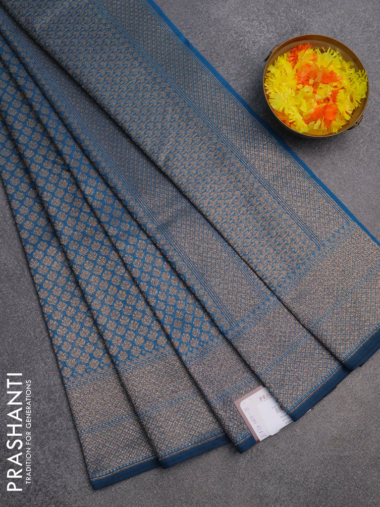 Banarasi semi silk saree cs blue with allover thread & zari woven butta weaves and woven border