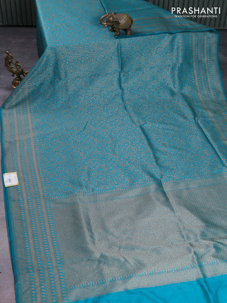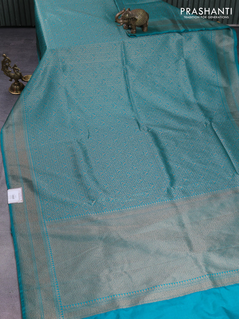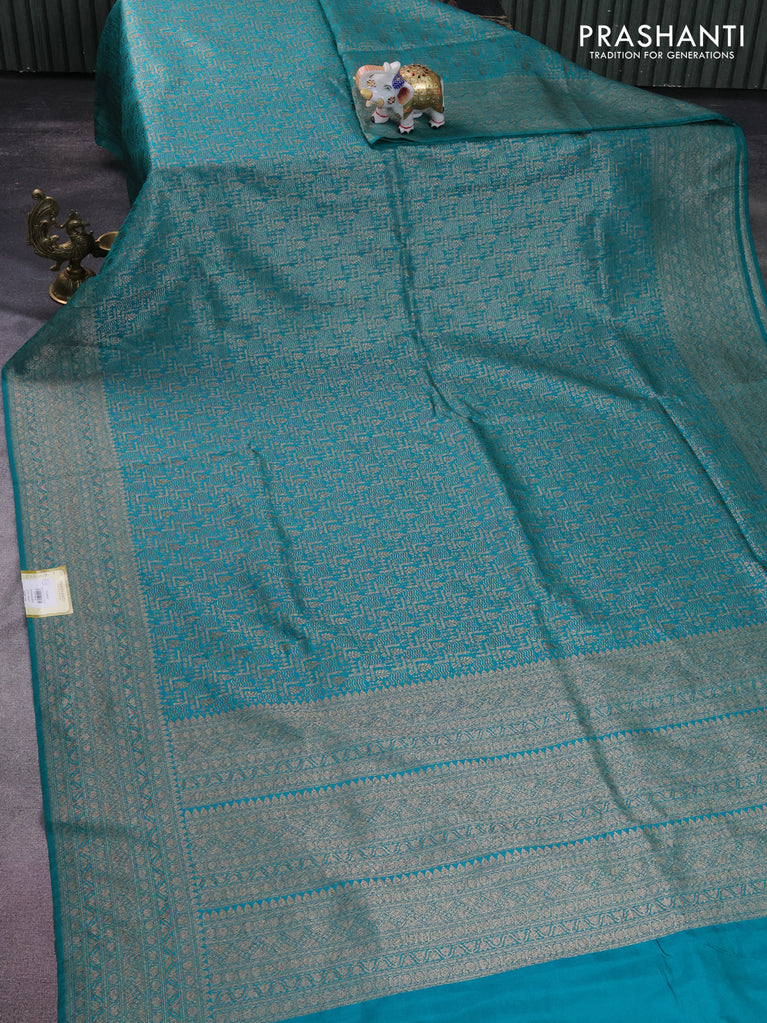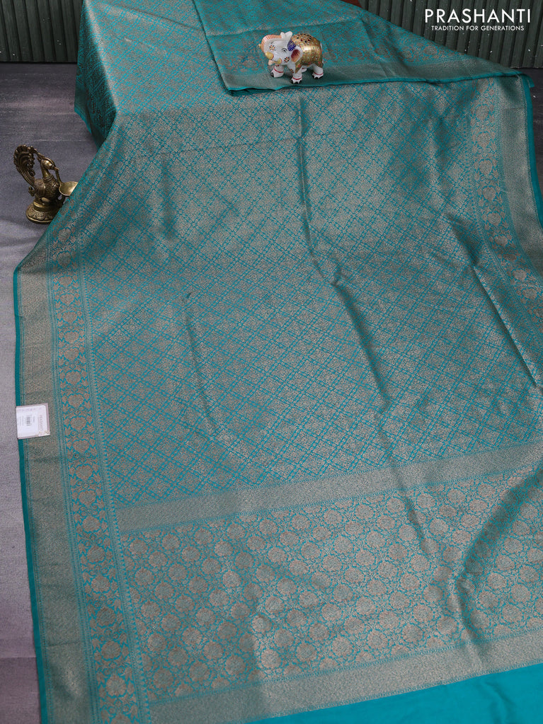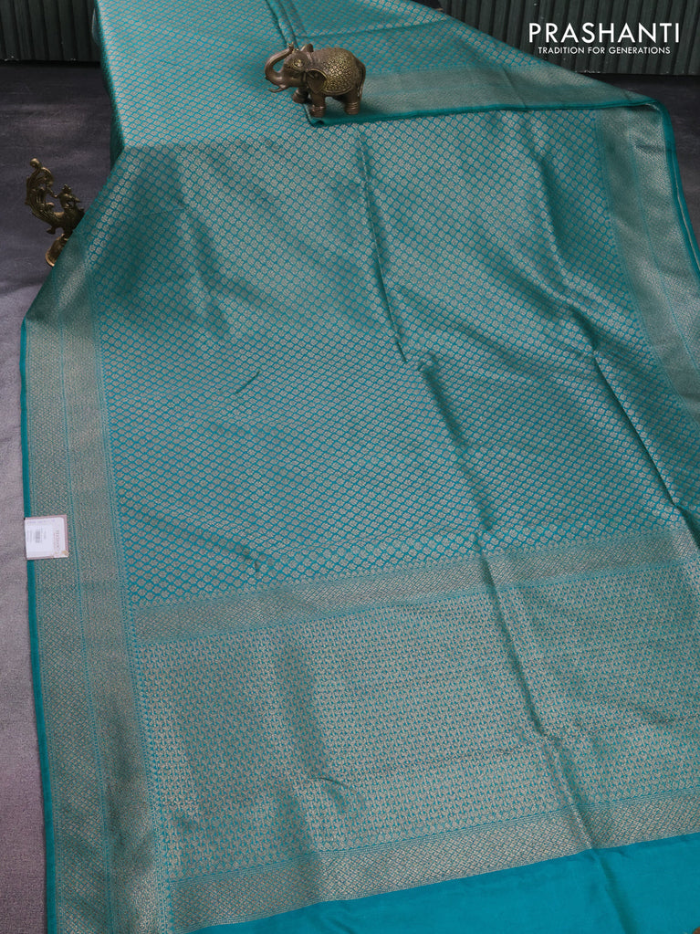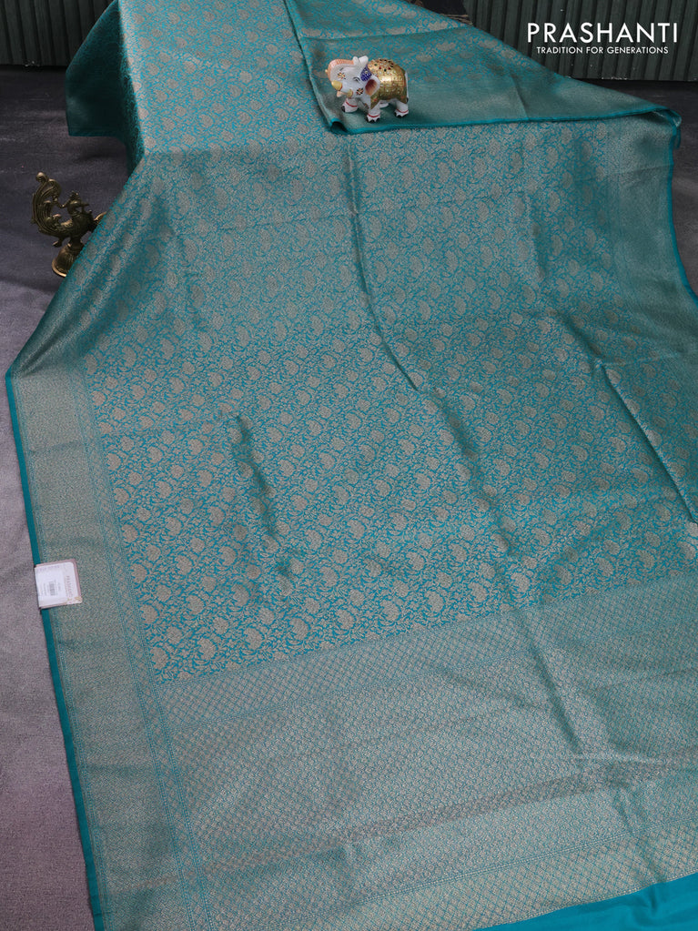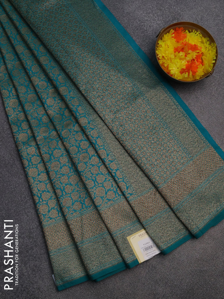 Banarasi semi silk saree teal green with allover thread & zari weaves and woven border