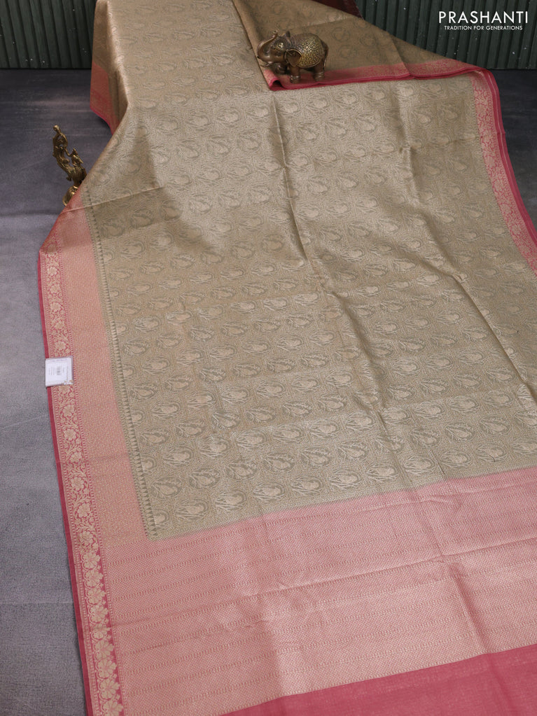 Banarasi silk cotton saree chikku shade and pastel maroon with allover thread & zari weaves and woven border
