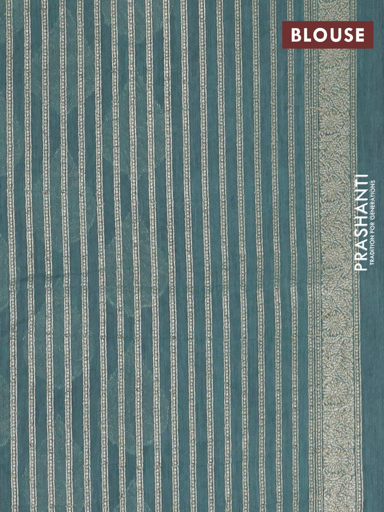 Banarasi silk cotton saree off white and peacock blue with allover thread & zari woven butta weaves and woven border