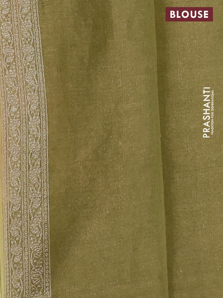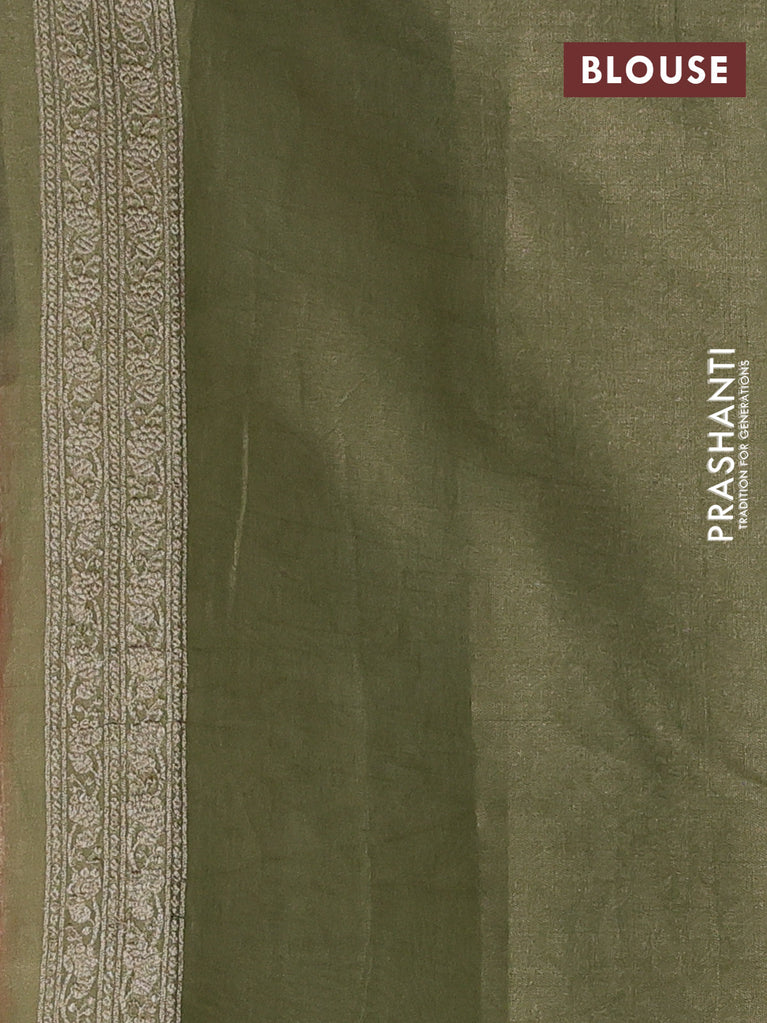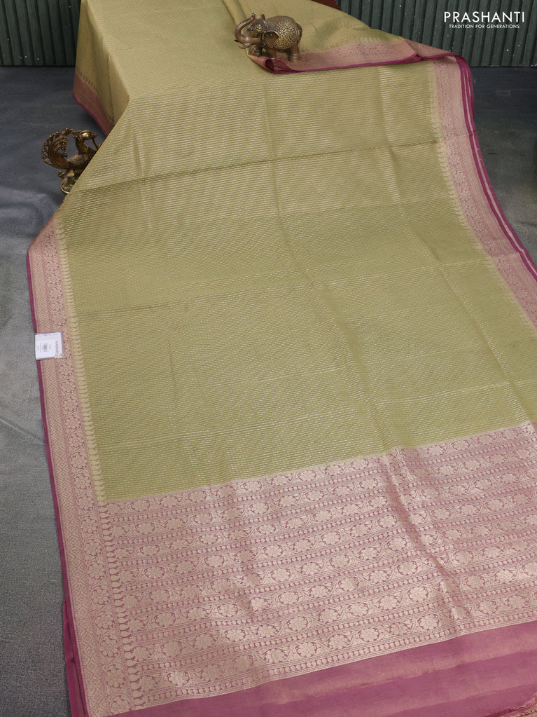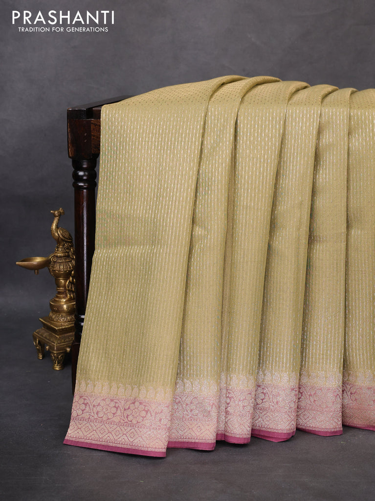 Banarasi tissue silk cotton saree mehendi green and wine shade with allover zari weaves and woven border