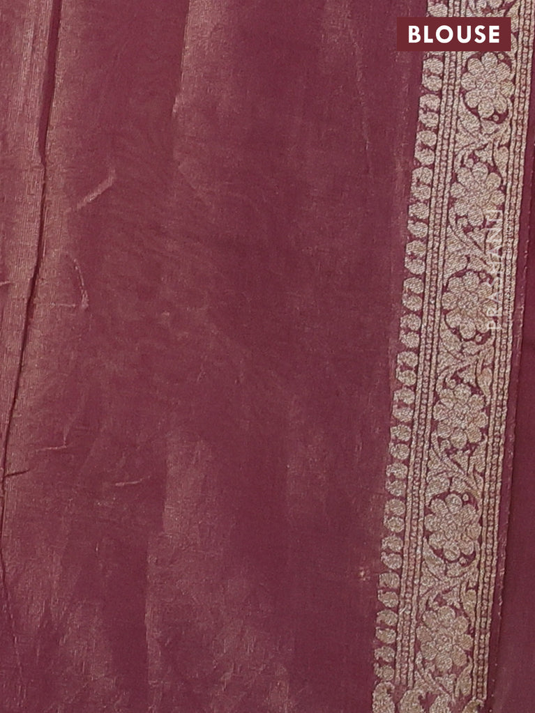 Banarasi tissue silk cotton saree sandal and pastel maroon with allover thread & zari woven butta weaves and woven border