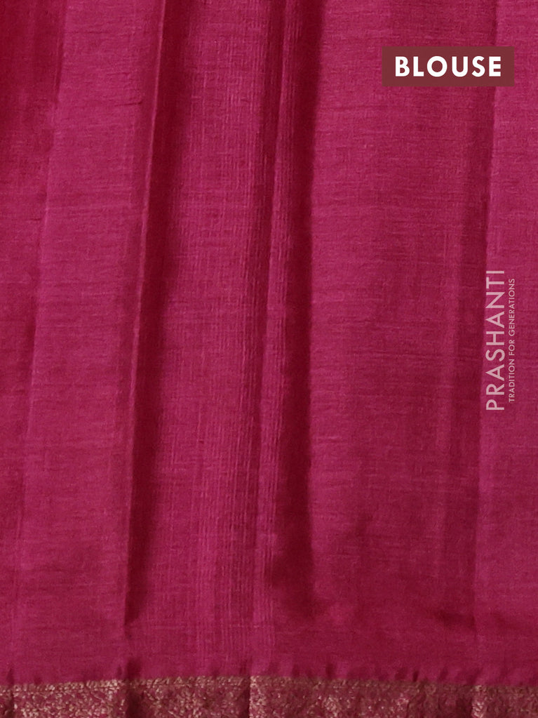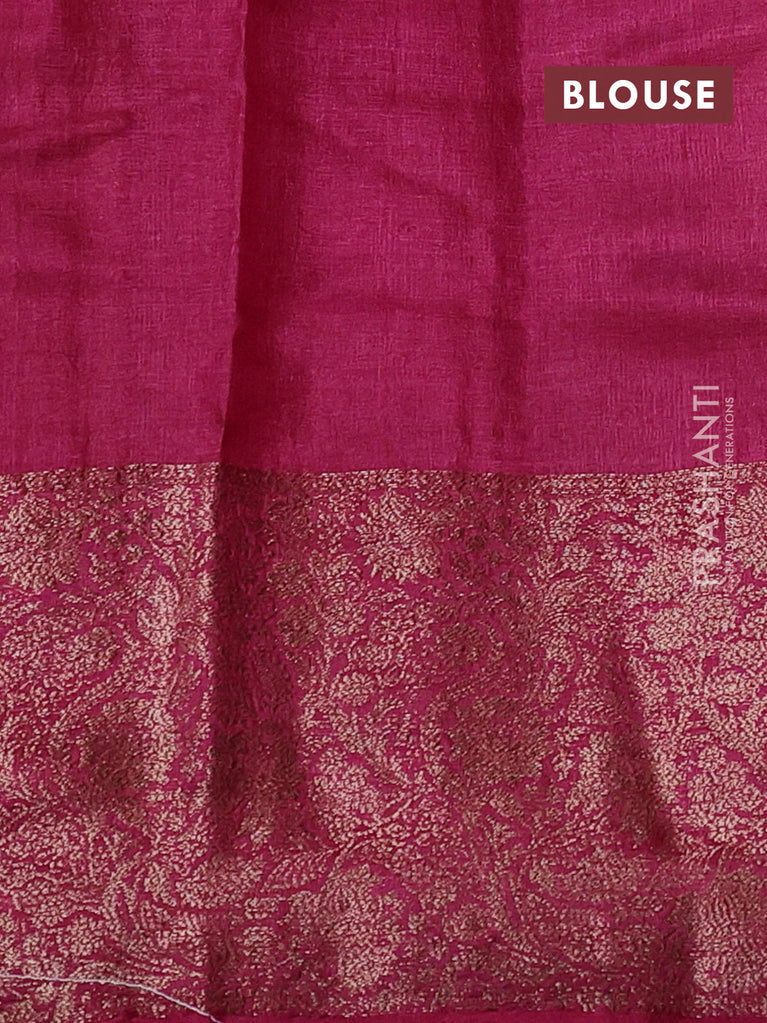 Banarasi tussar silk saree peacock blue and magenta pink with thread & zari woven buttas and woven border