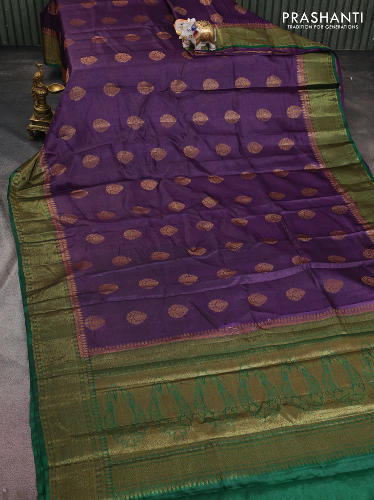 Banarasi tussar silk saree purple and green with allover thread & zari woven buttas and woven border
