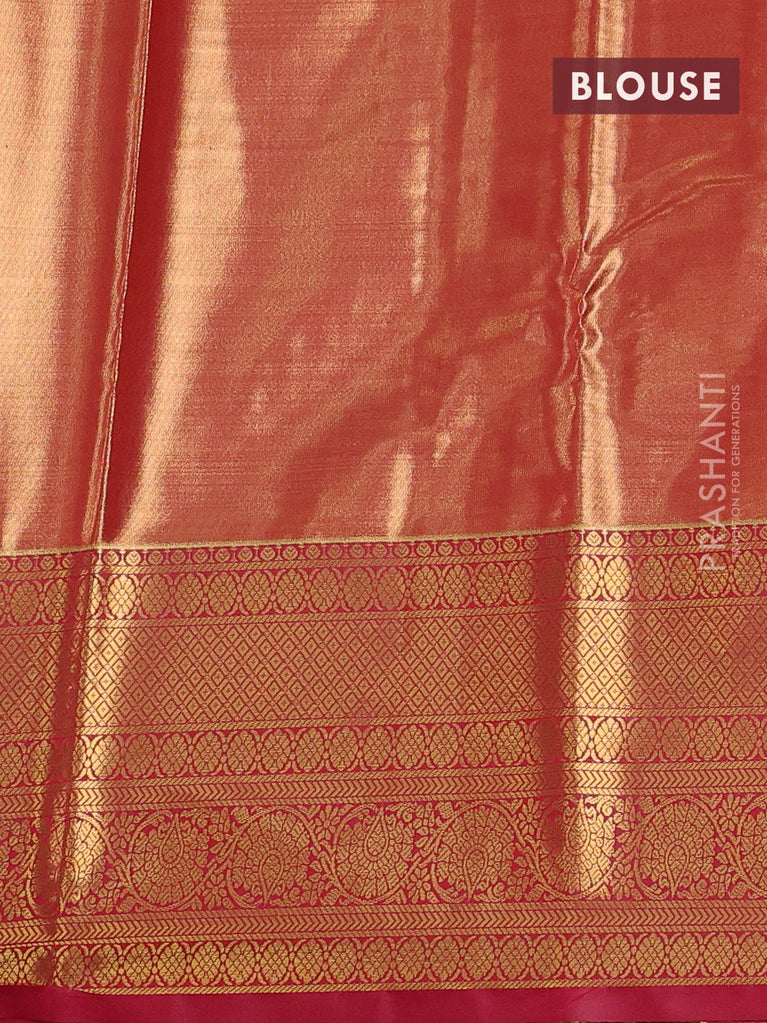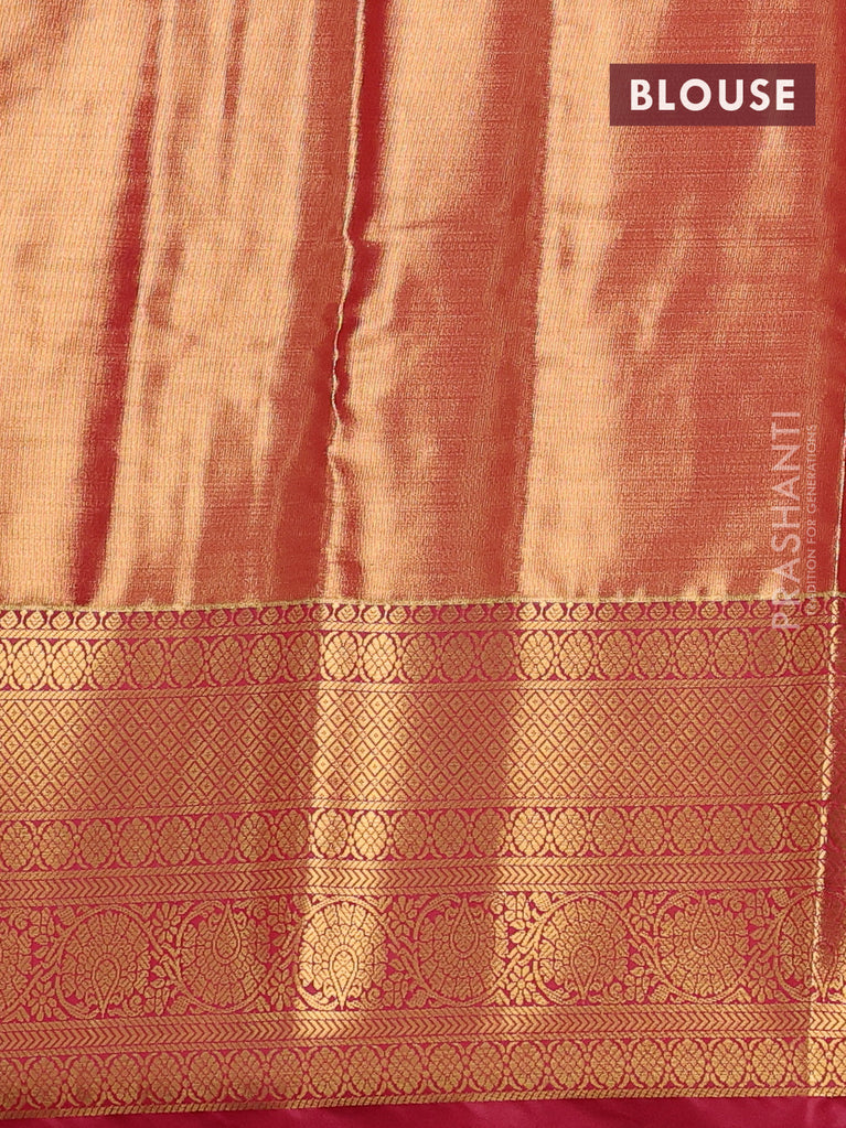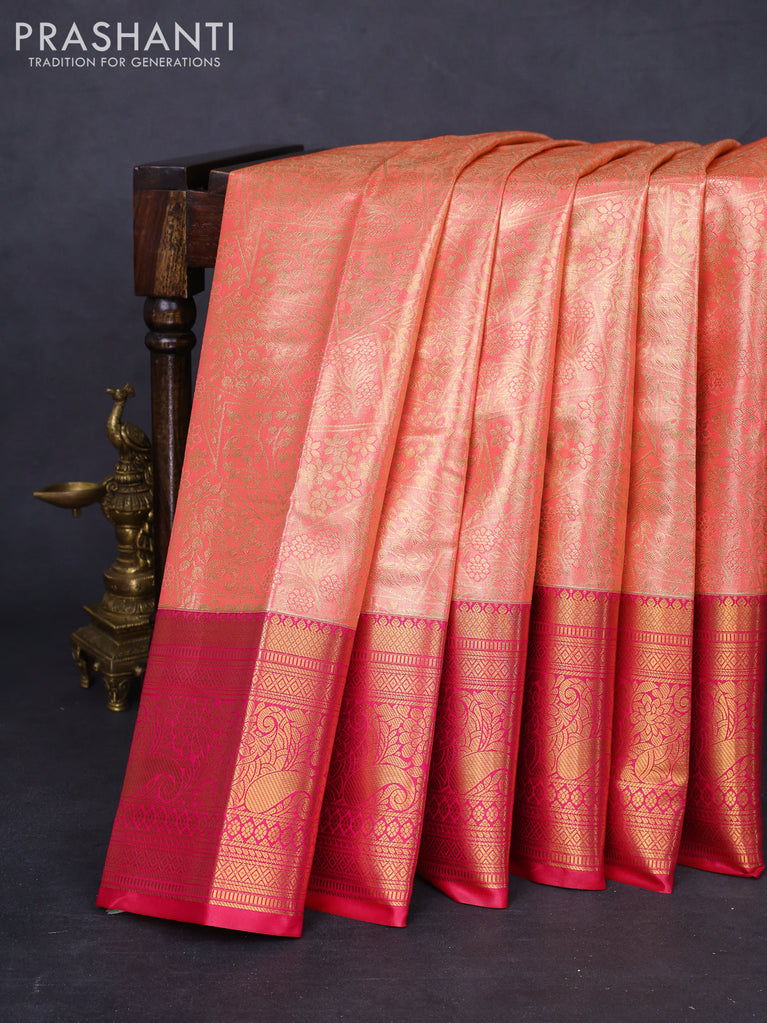 Bangalori tissue silk saree peach shade and reddish pink with allover zari woven brocade weaves and long zari woven border