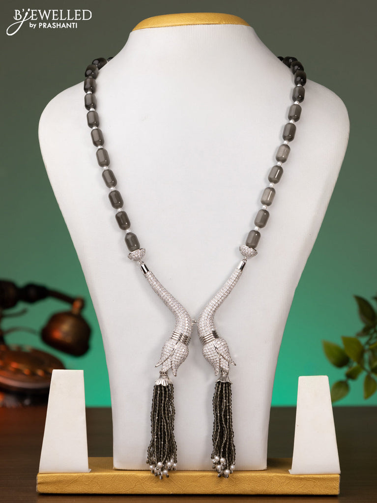 Beaded ice blue triple layer necklace peacock design with cz stones and beads hanging