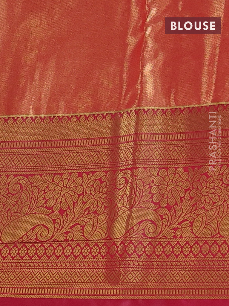 Bangalori tissue silk saree peach shade and reddish pink with allover zari woven brocade weaves and long zari woven border