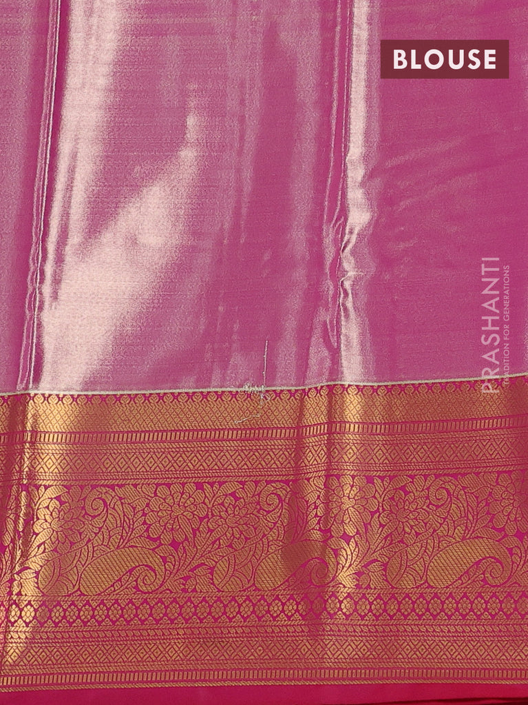 Bangalori tissue silk saree teal blue and reddish pink with allover zari woven brocade weaves and long zari woven border