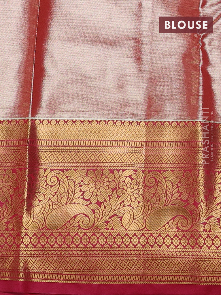 Bangalori tissue silk saree red and violet with allover zari woven brocade weaves and long zari woven border