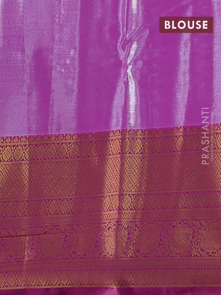 Bangalori tissue silk saree teal blue and purple with allover zari woven brocade weaves and long zari woven border