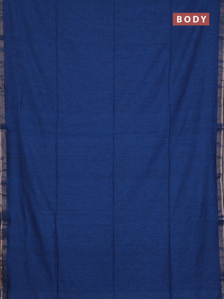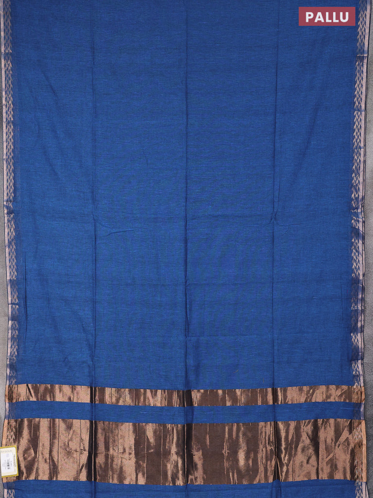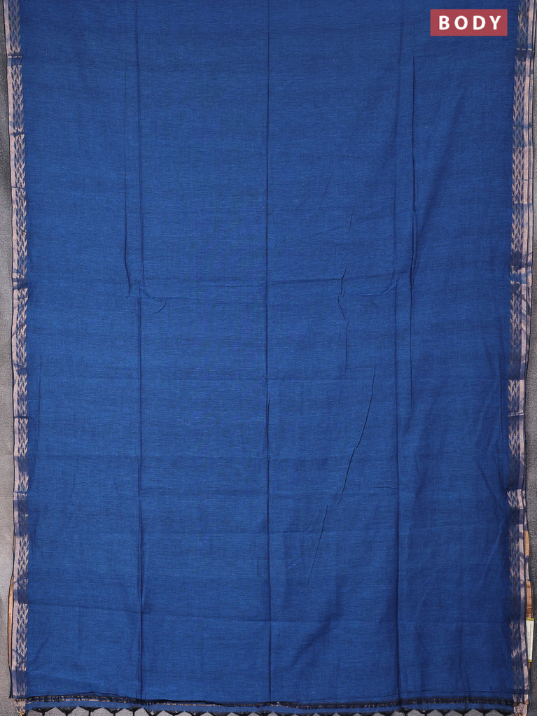 Bengal soft cotton saree cs blue with plain body and zari woven border