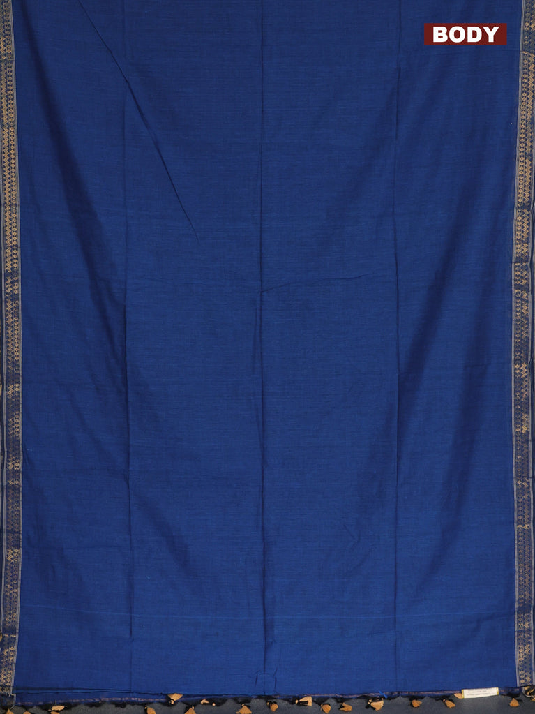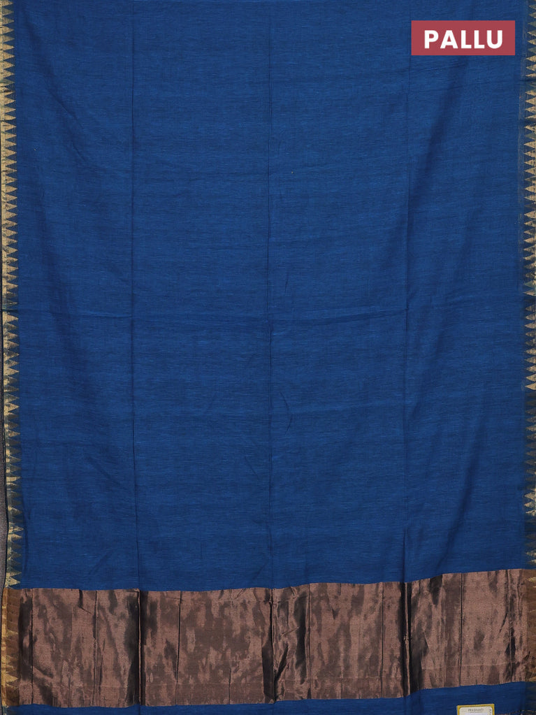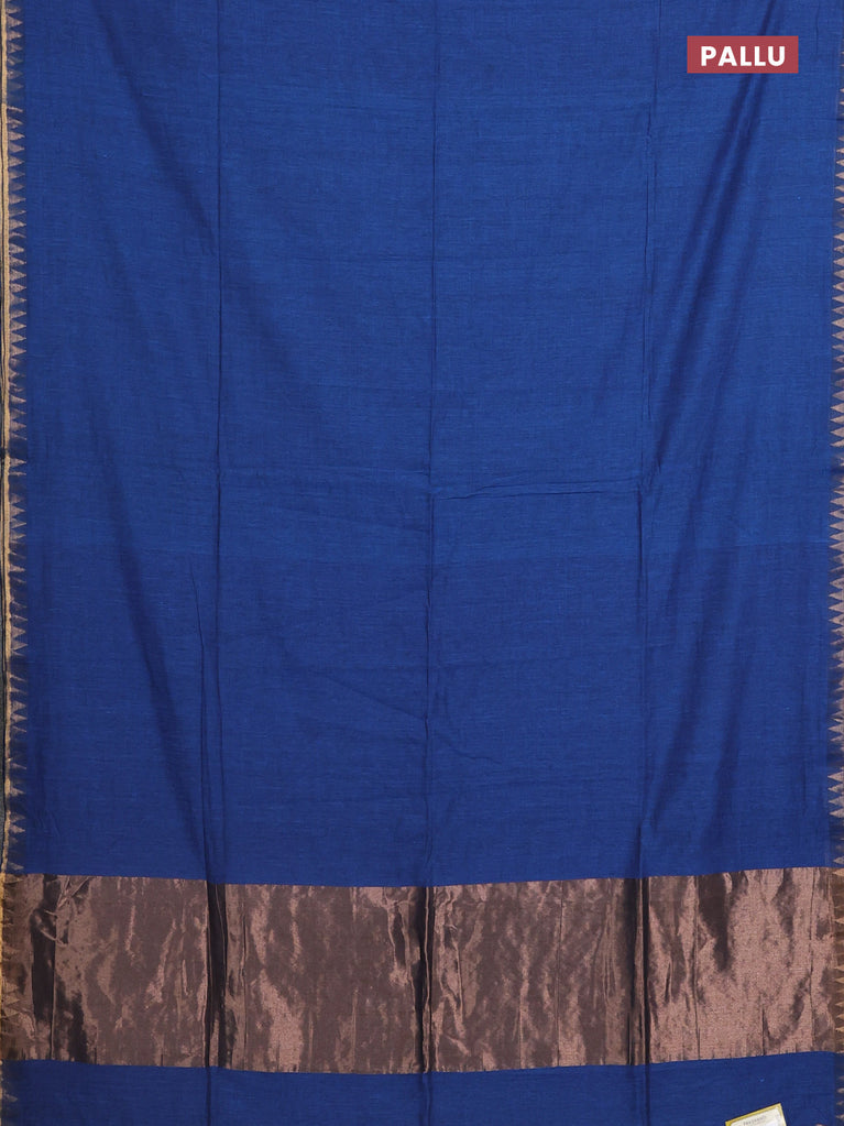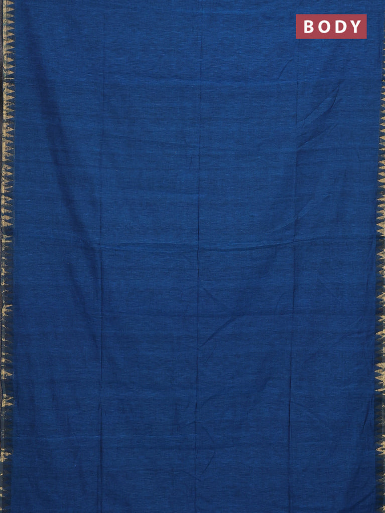Bengal soft cotton saree cs blue with plain body and temple design zari woven border