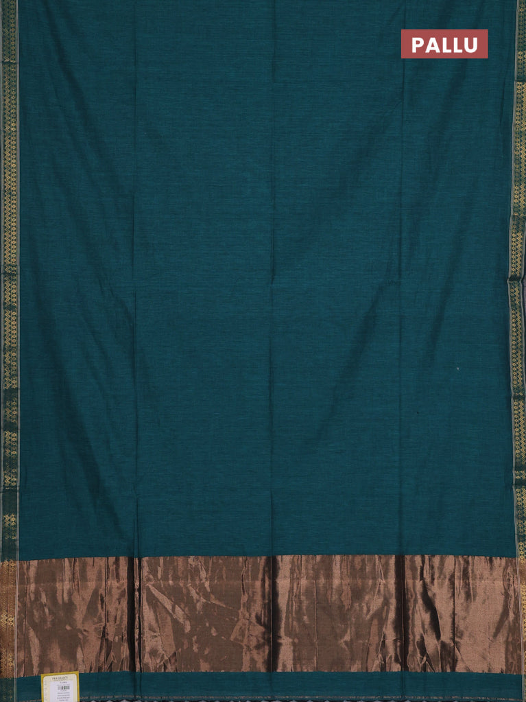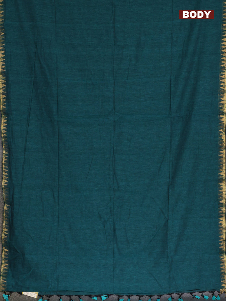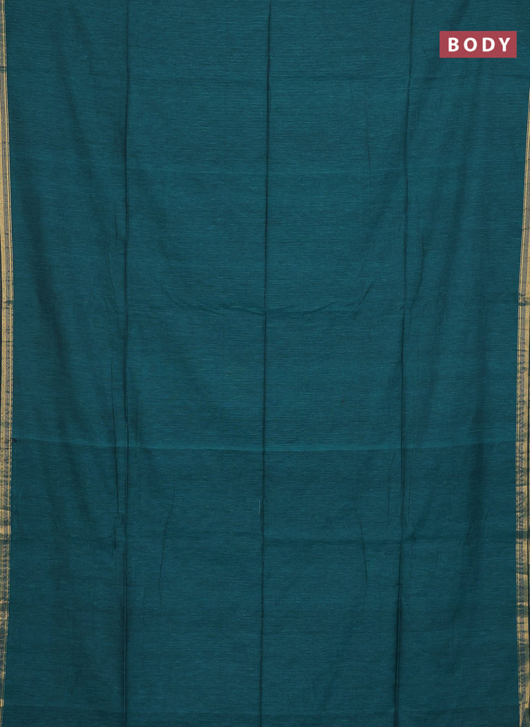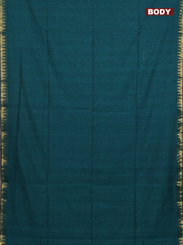 Bengal soft cotton saree teal green shade with plain body and zari woven piping border