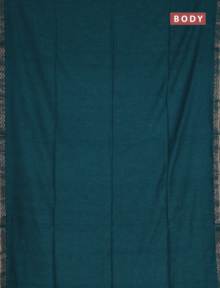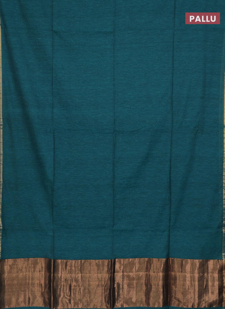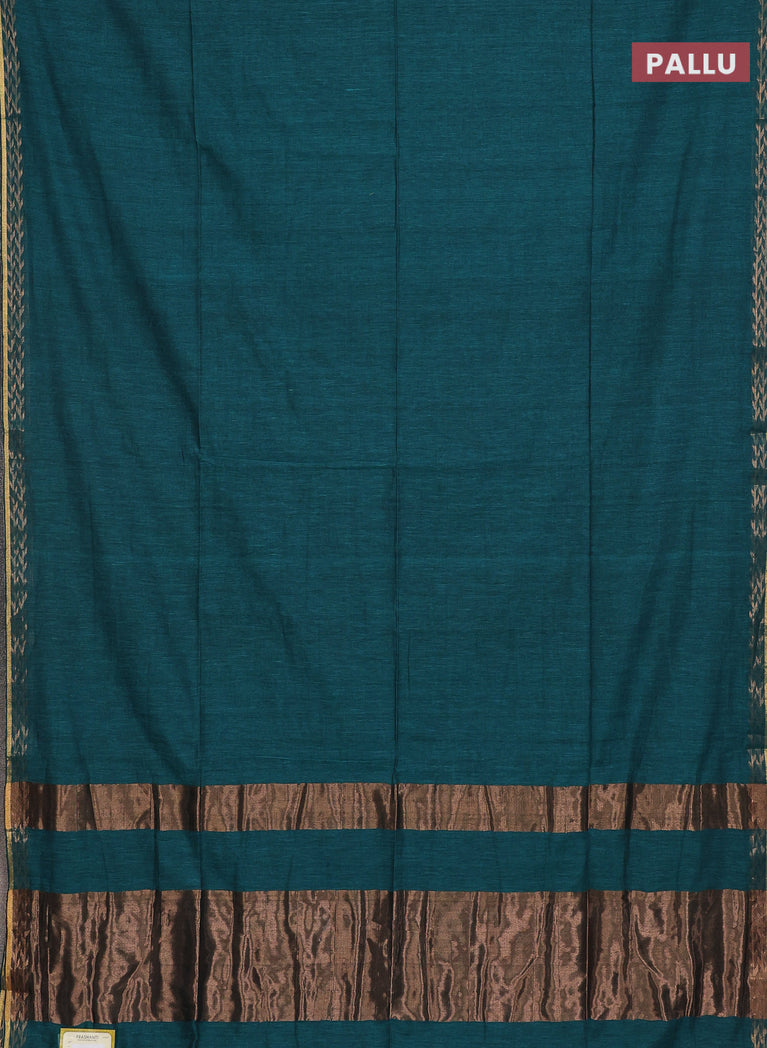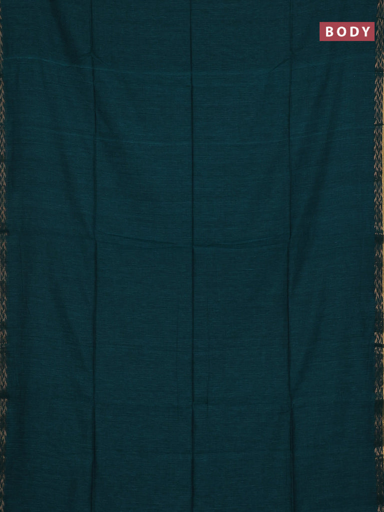 Bengal soft cotton saree teal green shade with plain body and zari woven piping border