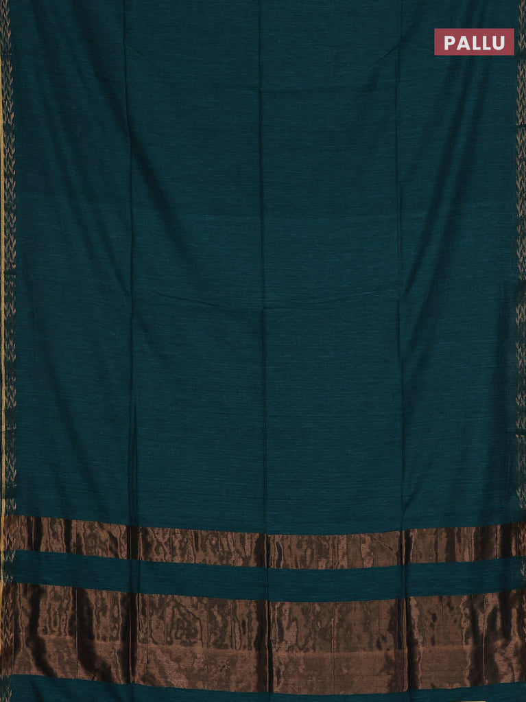 Bengal soft cotton saree teal green and mustard yellow with plain body and zari woven border