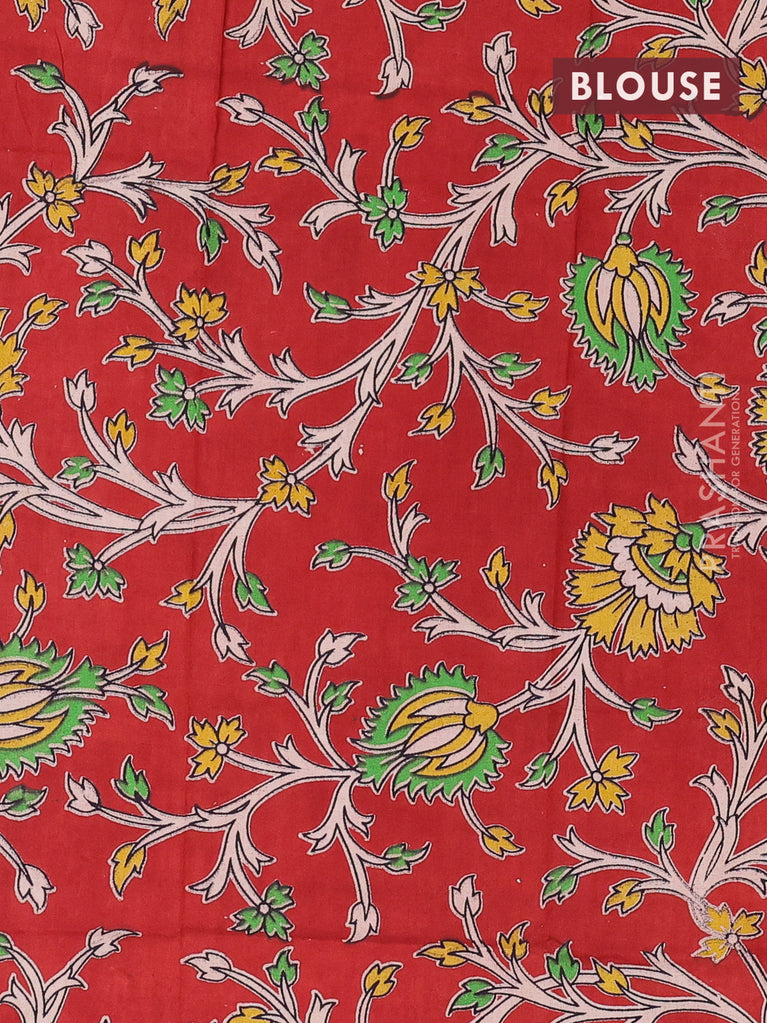 Bengal soft cotton saree teal green and red with plain body and zari woven border