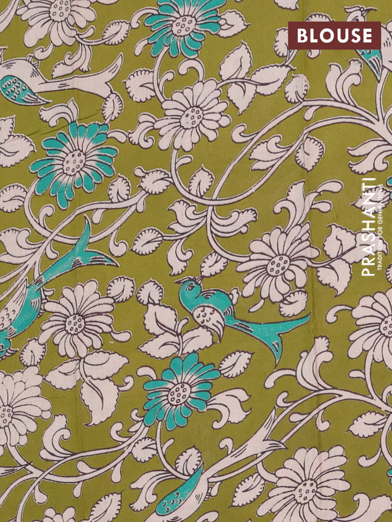 Bengal soft cotton saree teal green and sap green with plain body and zari woven border
