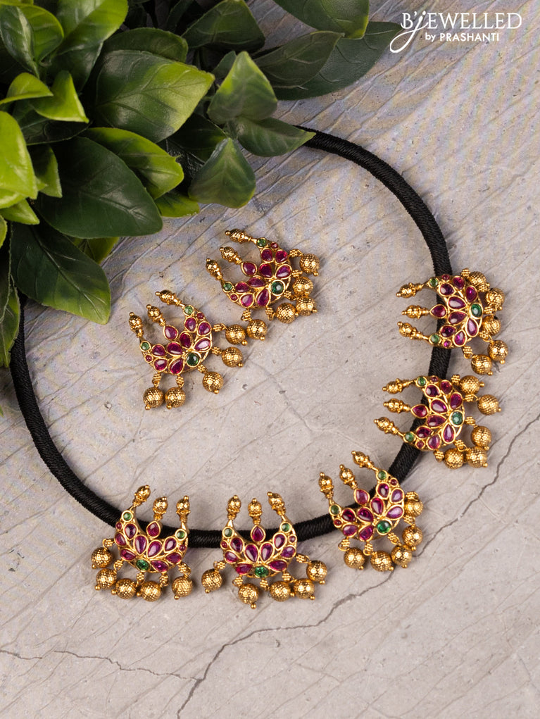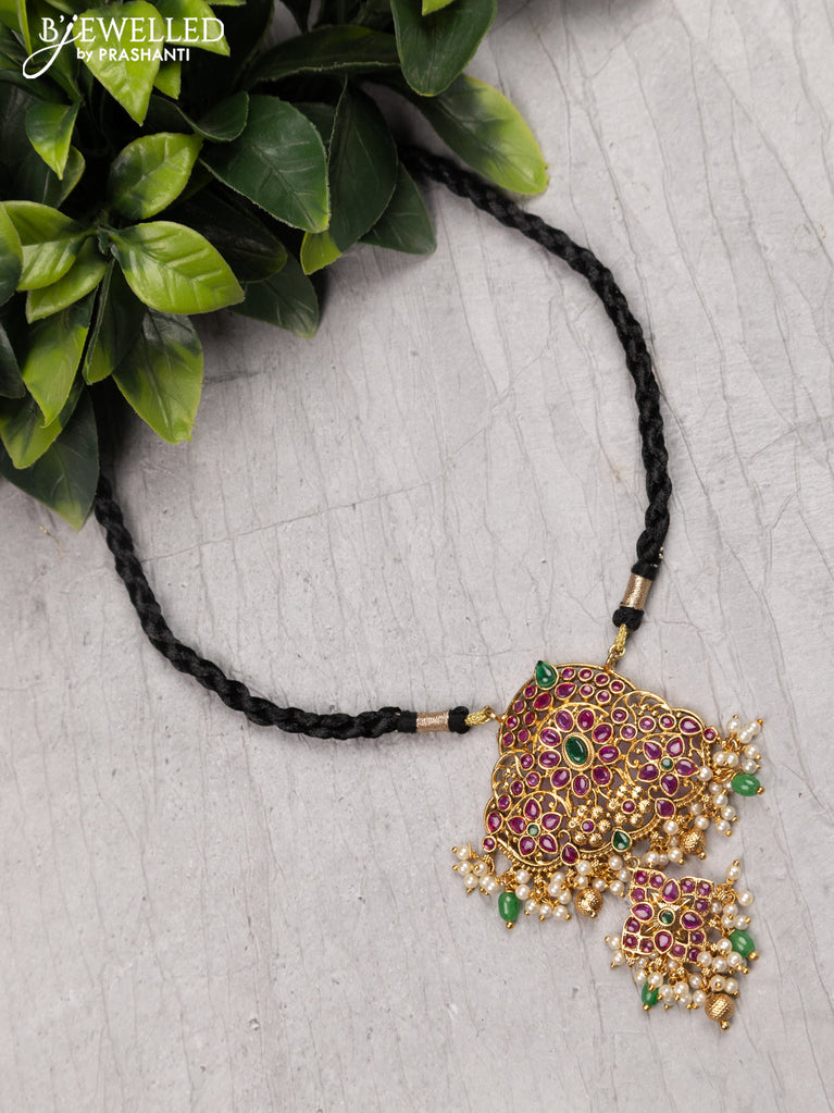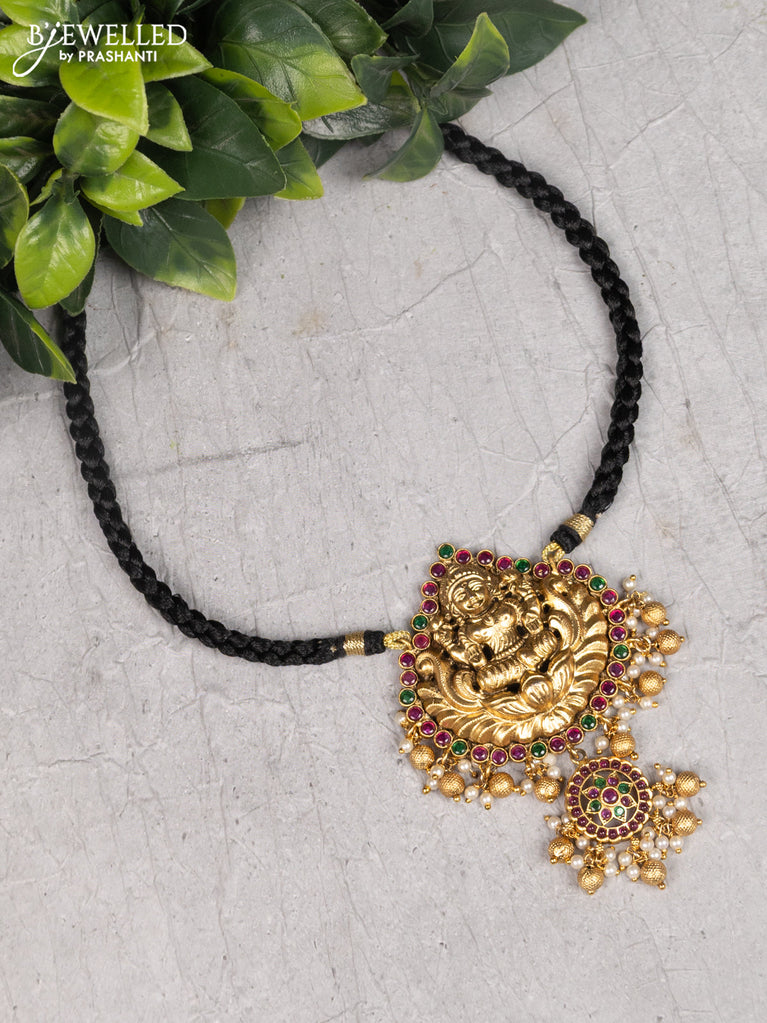 Black thread necklace lakshmi design with kemp & cz stones and golden beads hanging without earrings