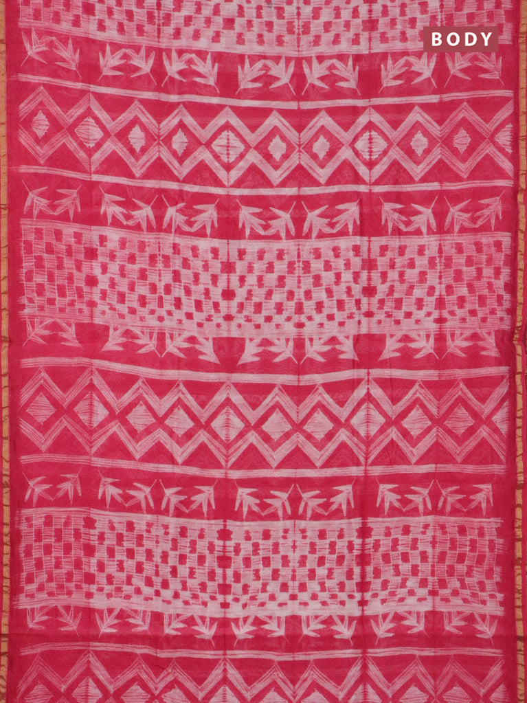 Chanderi bagru saree pink with allover prints and small zari woven border
