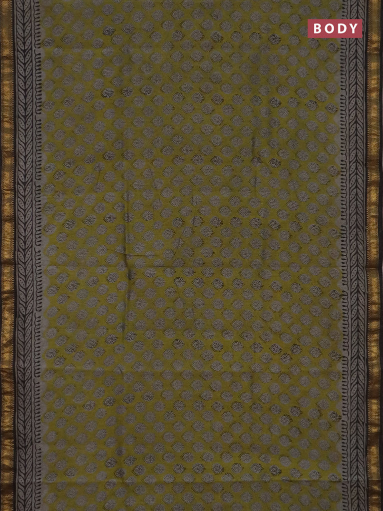 Chanderi bagru saree sap green with butta prints and small zari woven border