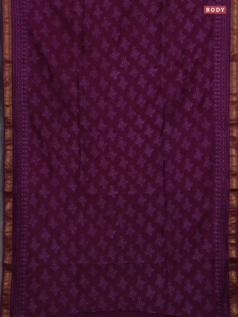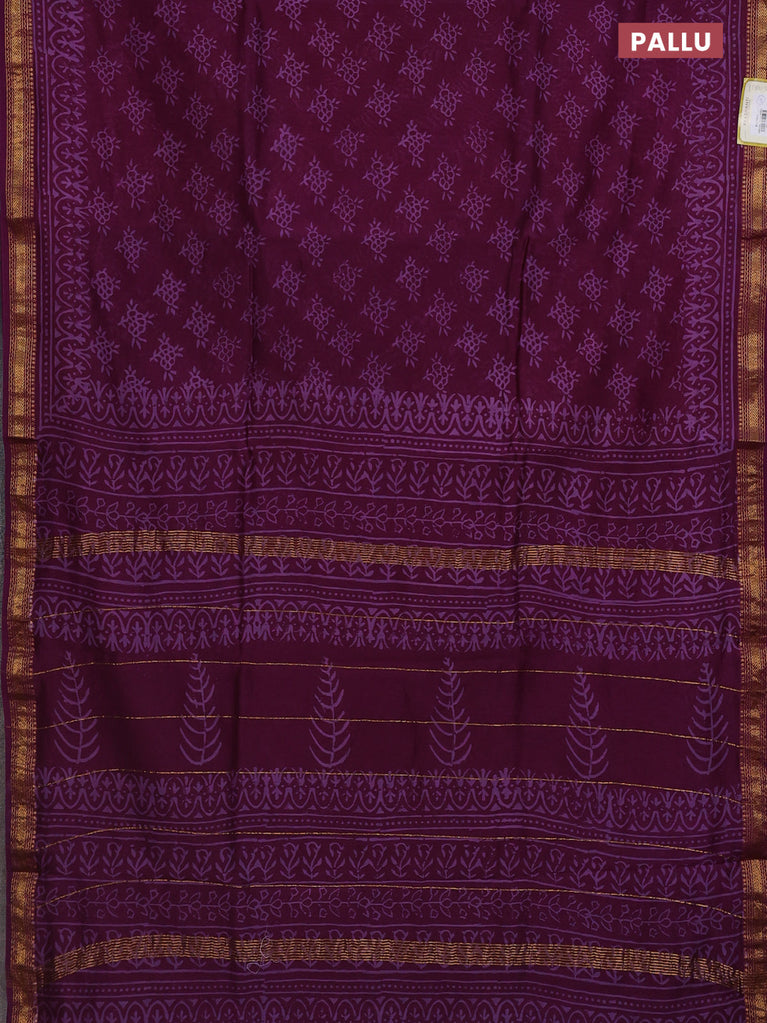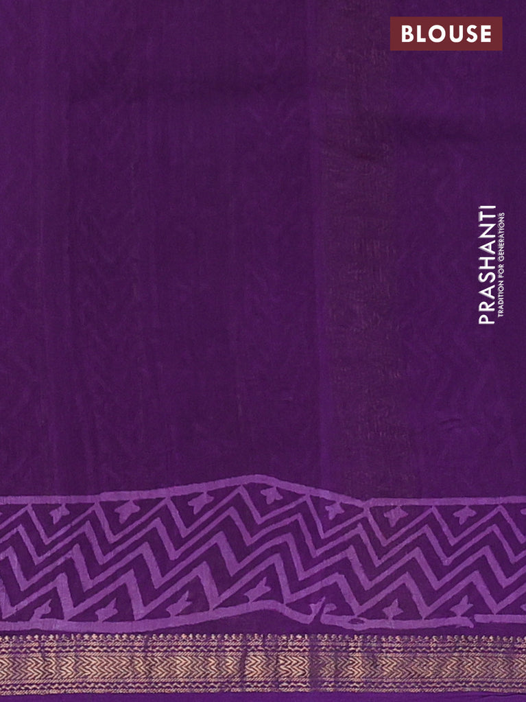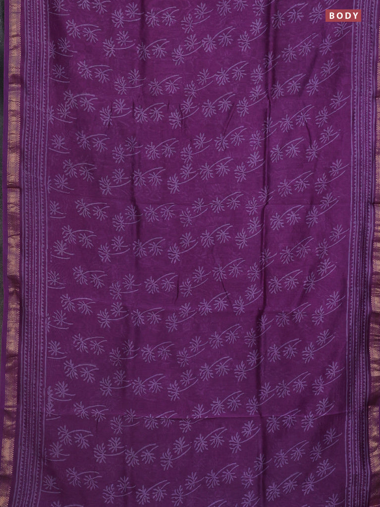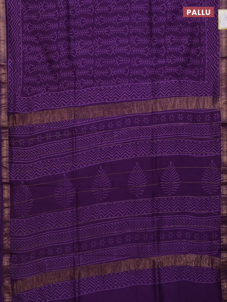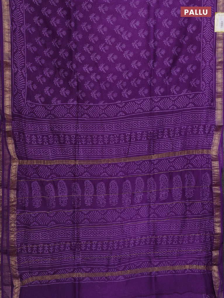 Chanderi bagru saree purple with allover prints and mageshwari border