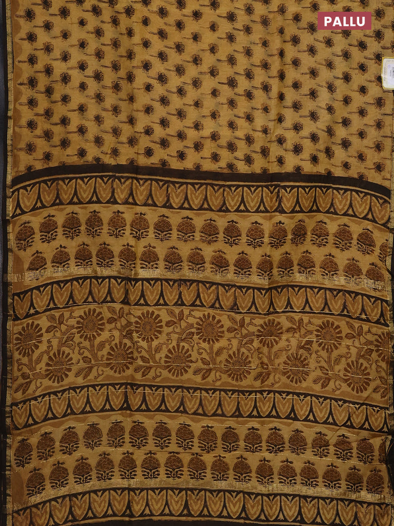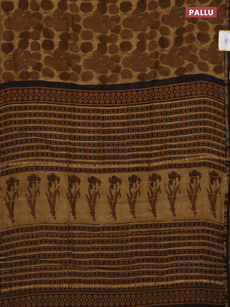 Chanderi bagru saree sandal and brown with allover floral butta prints and small zari woven border