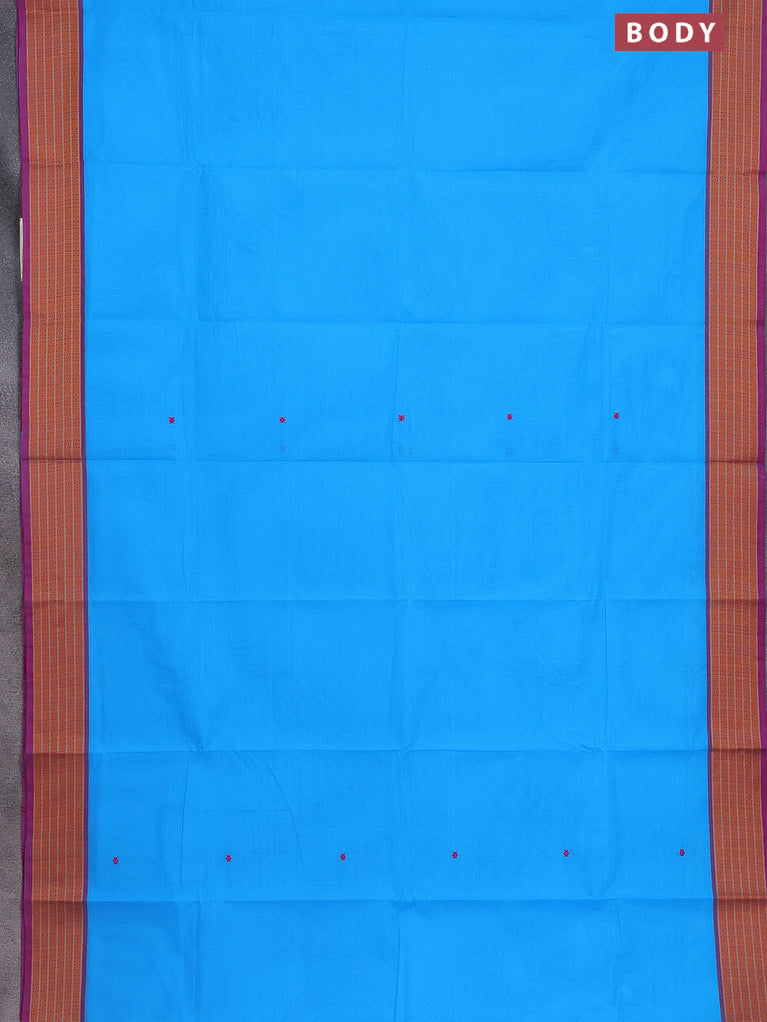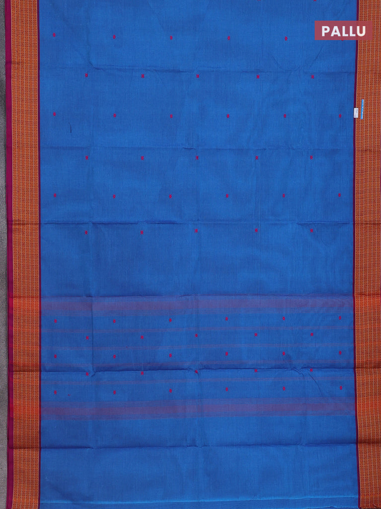Chettinad cotton saree cs blue and dark pink with thread woven buttas and zari woven border