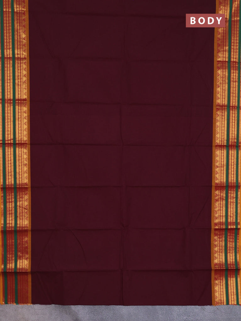 Chettinad cotton saree brown and maroon with thread woven buttas and rattapet zari woven border