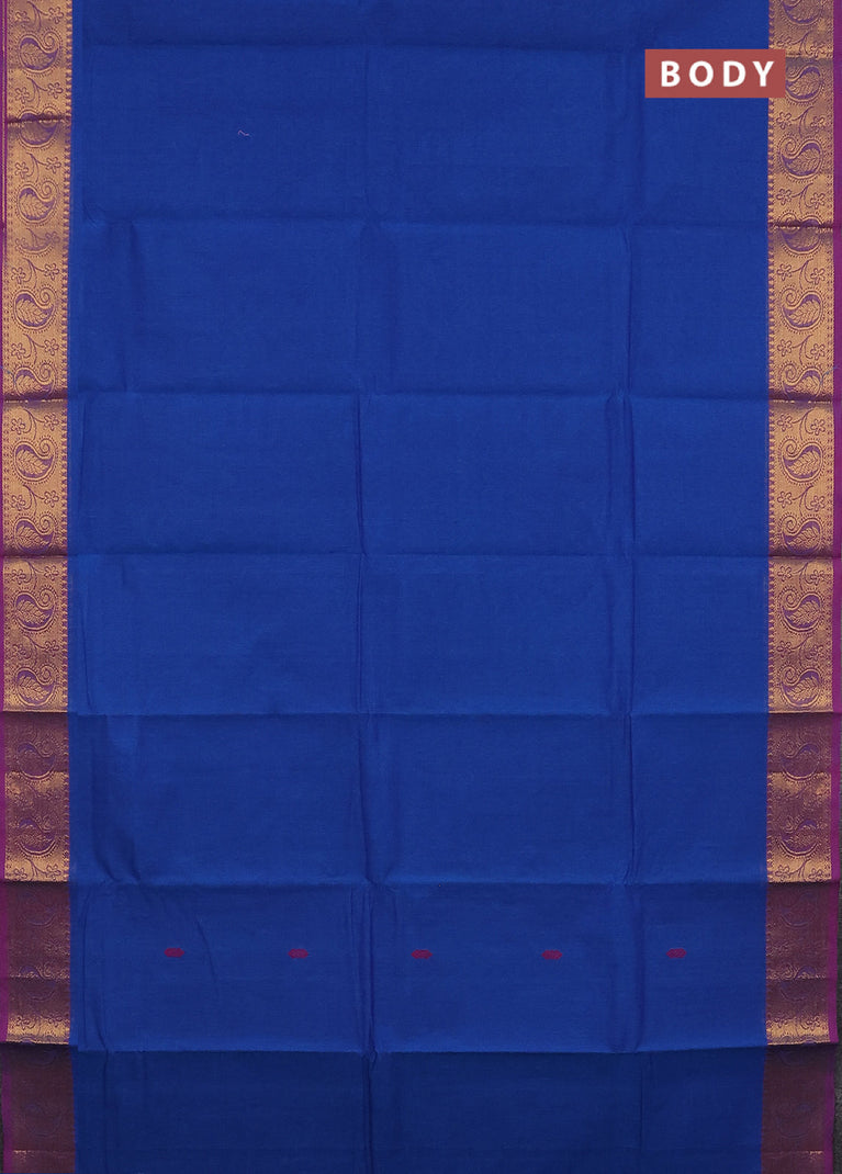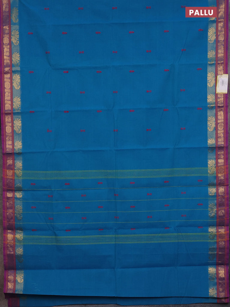 Chettinad cotton saree blue and purple with thread woven buttas and zari woven paisley border