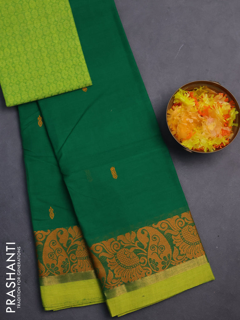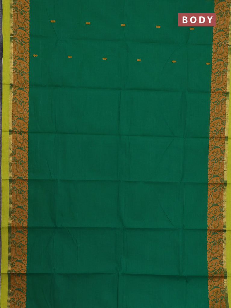 Chettinad cotton saree green and mustard with thread woven buttas and rattapet zari woven border