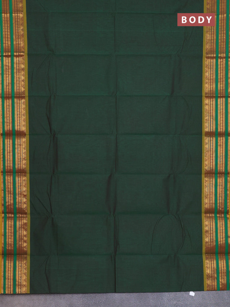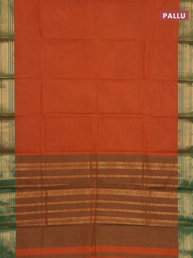 Chettinad cotton saree green and brown with thread woven buttas and rattapet zari woven border