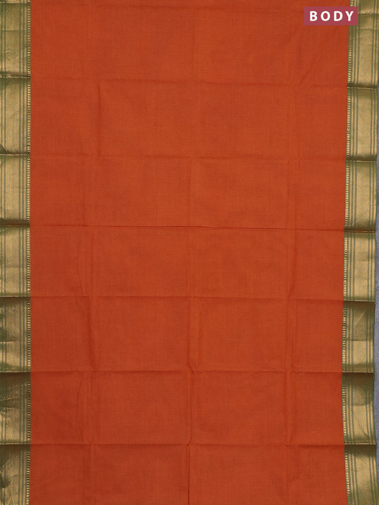 Chettinad cotton saree dual shade of orange and green with allover checked pattern and rattapet zari woven border