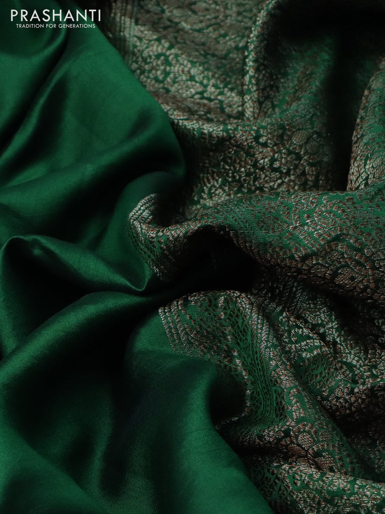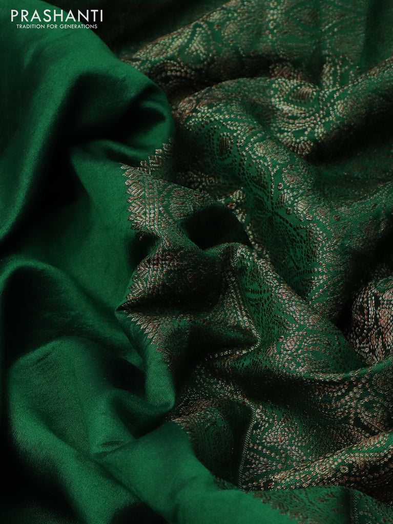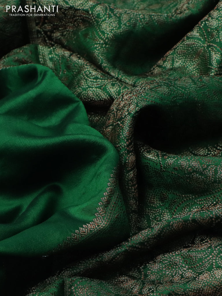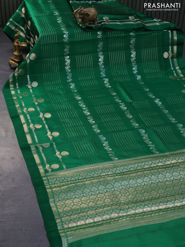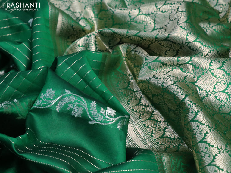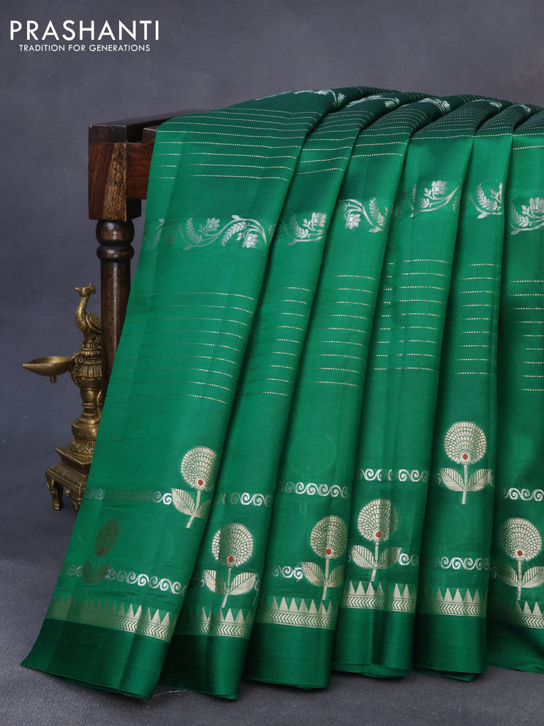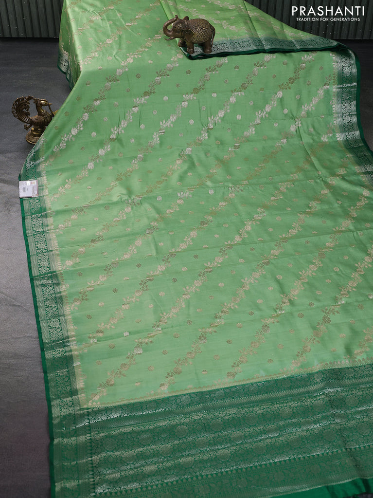 Chiniya silk saree green with zari woven floral buttas and zari woven border