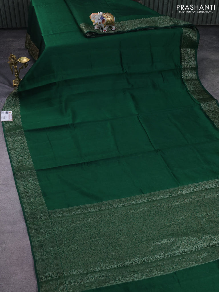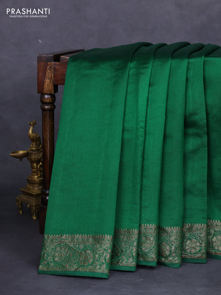 Chiniya silk saree green with plain body and woven border