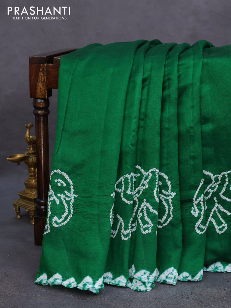 Chiniya silk saree green with allover bandhani prints
