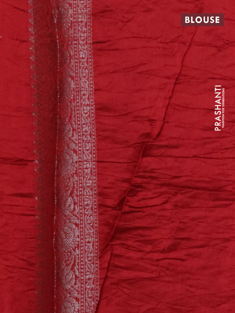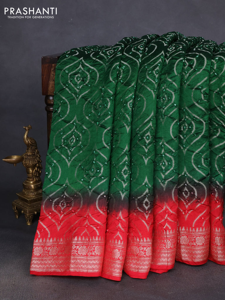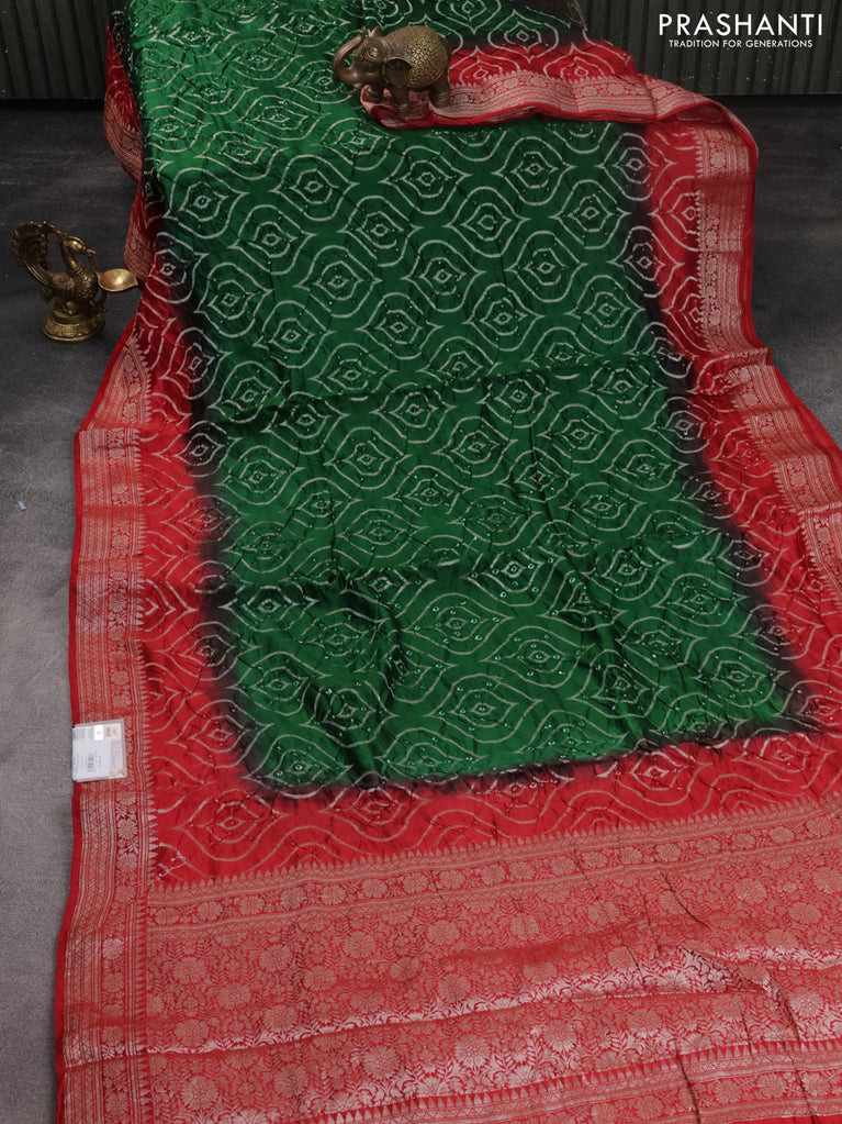 Chiniya silk saree green and red with allover bandhani prints & zari weaves and zari woven border
