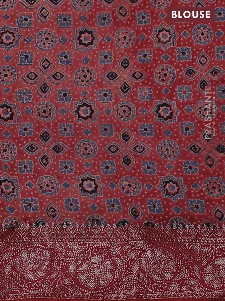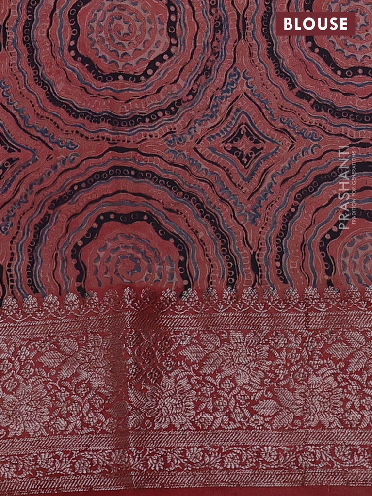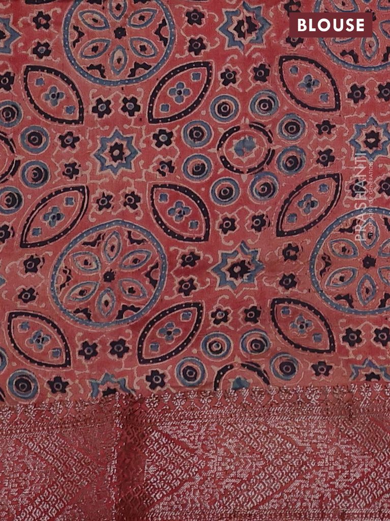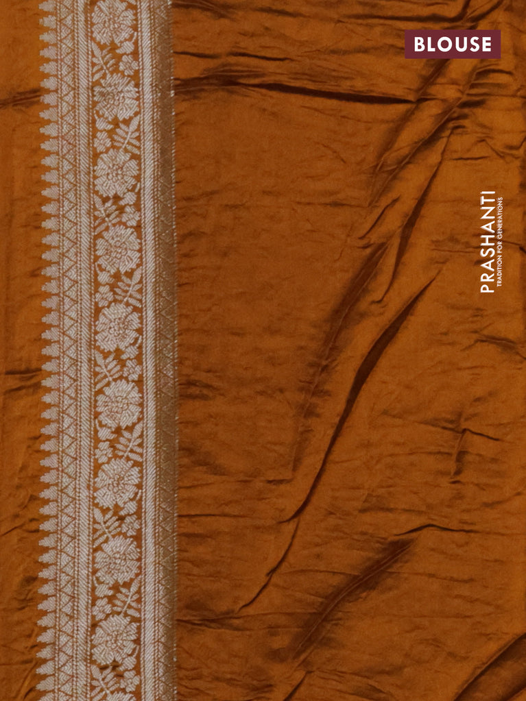Chiniya silk saree green and rust shade with plain body and woven border
