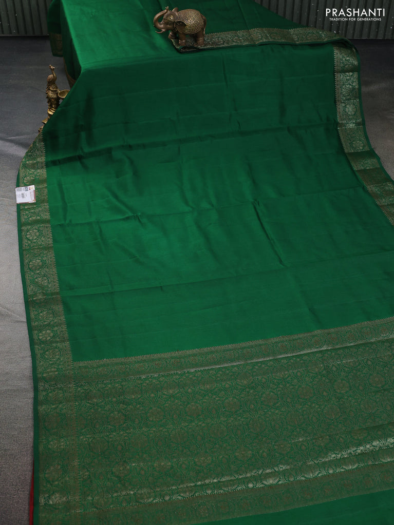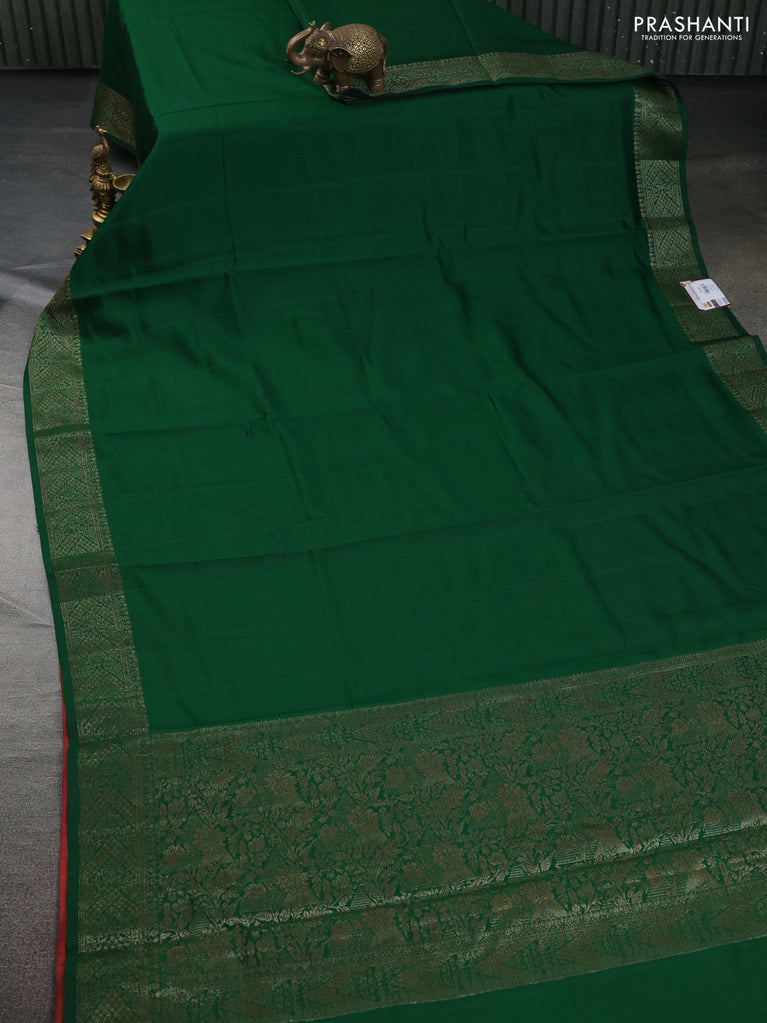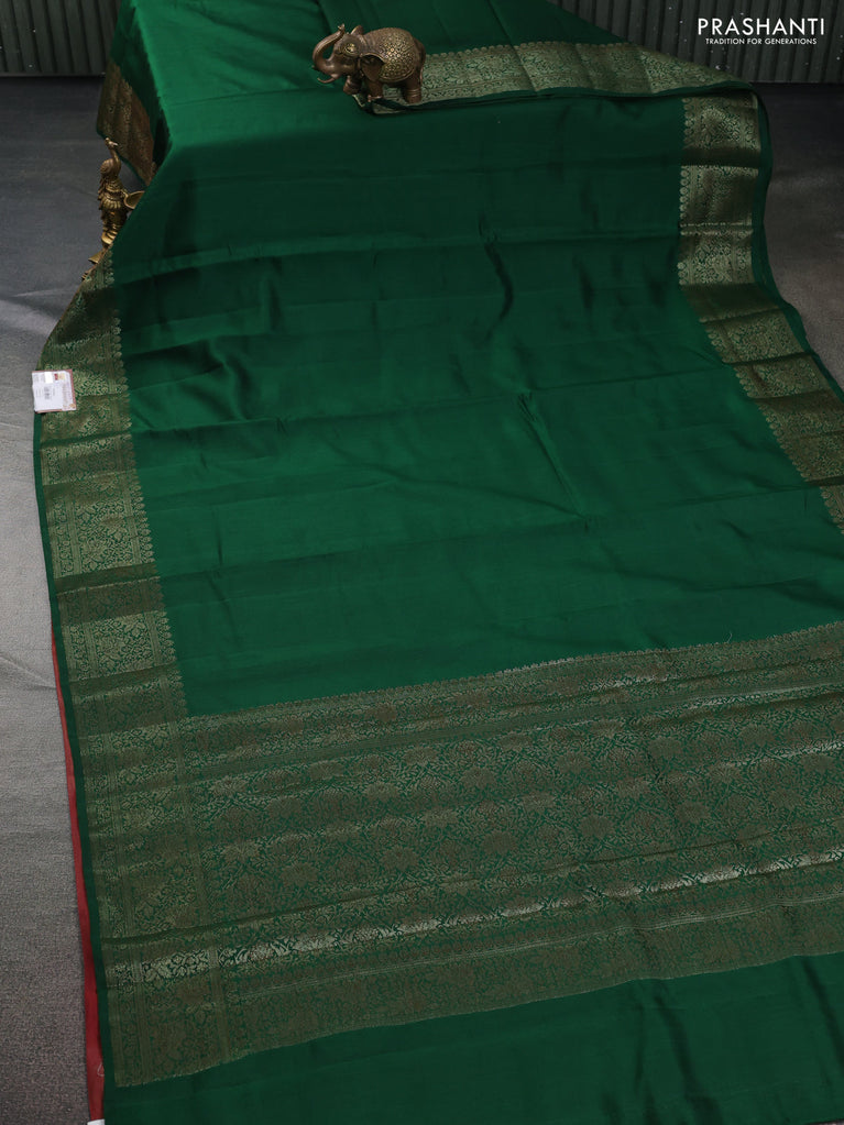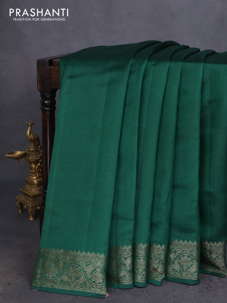 Chiniya silk saree green and maroon with plain body and woven border