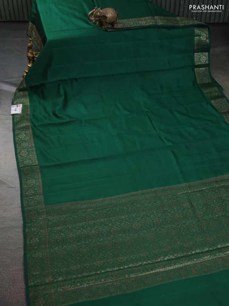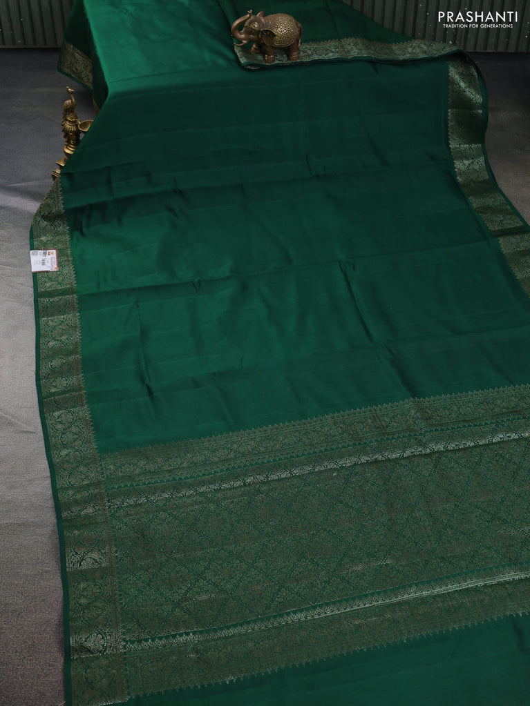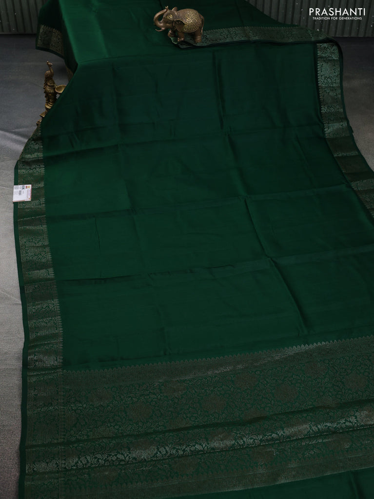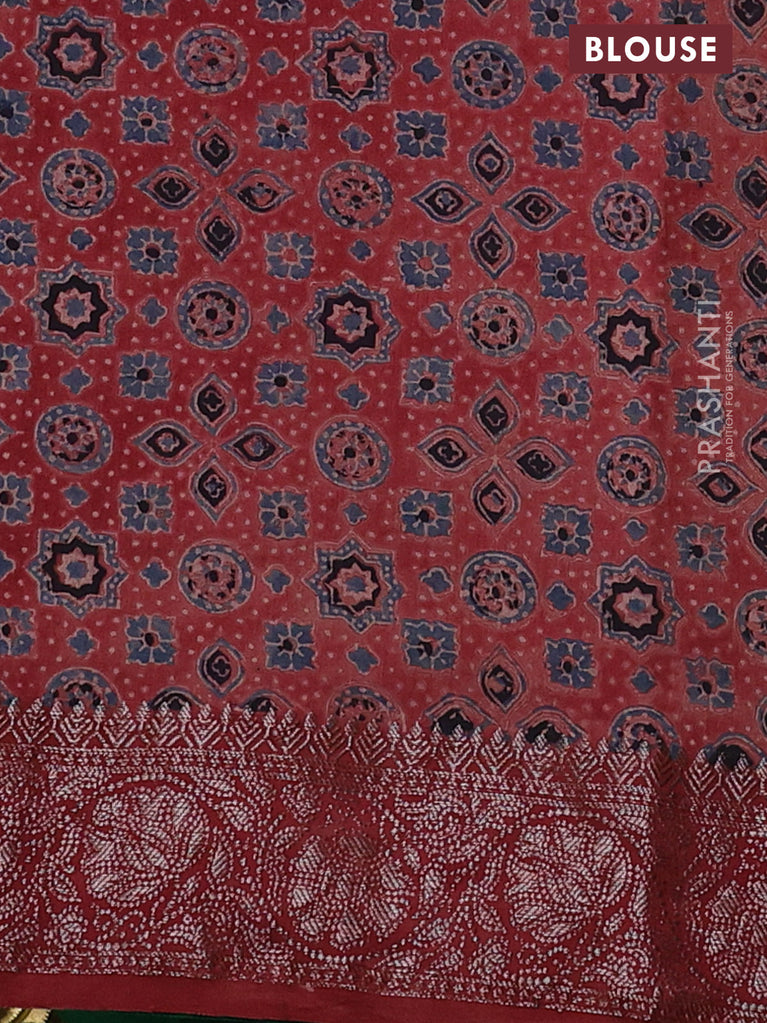 Chiniya silk saree green and maroon with plain body and woven border
