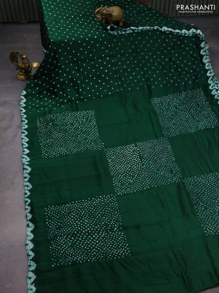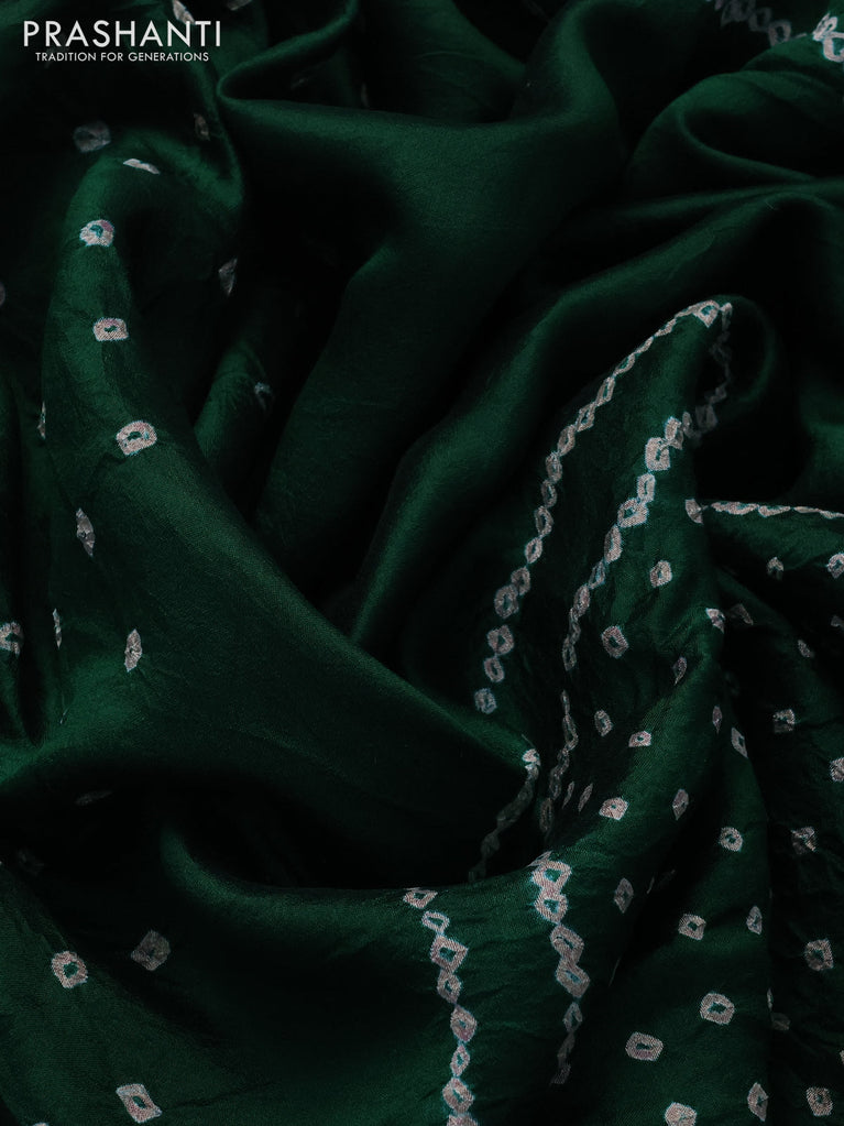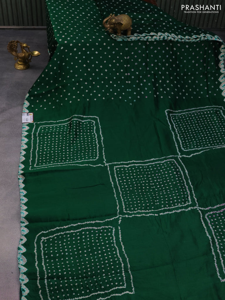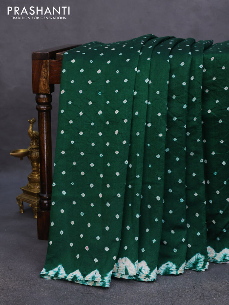 Chiniya silk saree green with allover bandhani prints