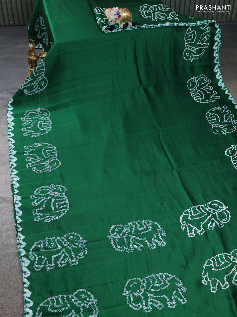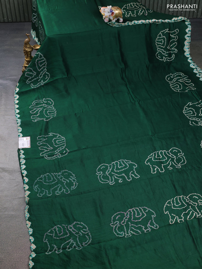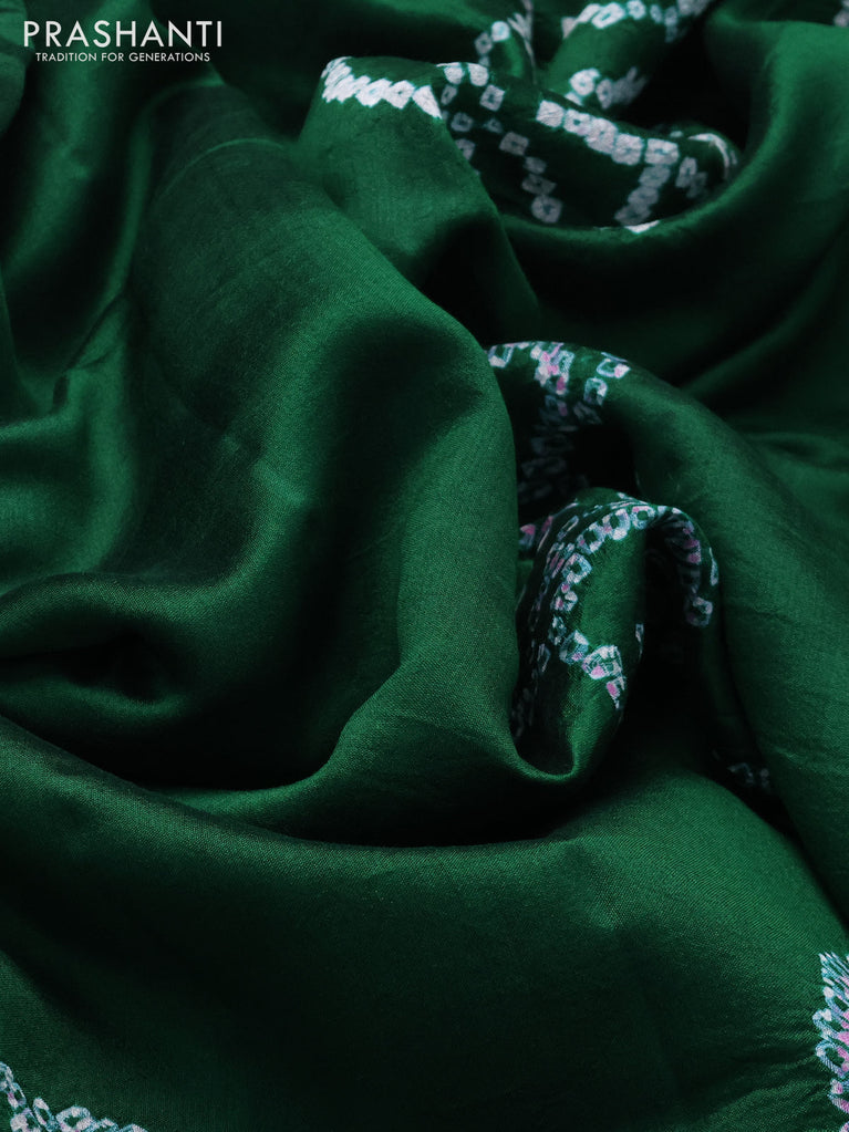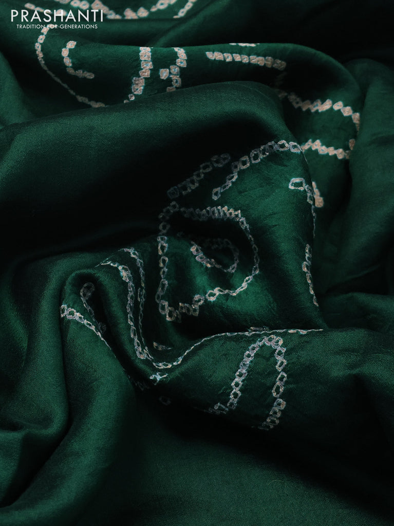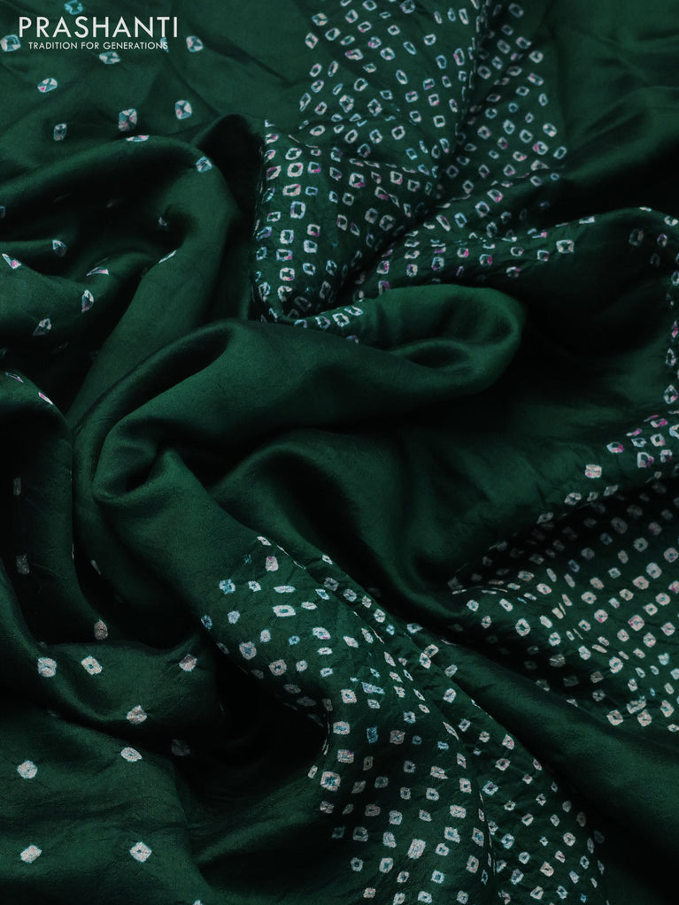 Chiniya silk saree green with allover bandhani prints