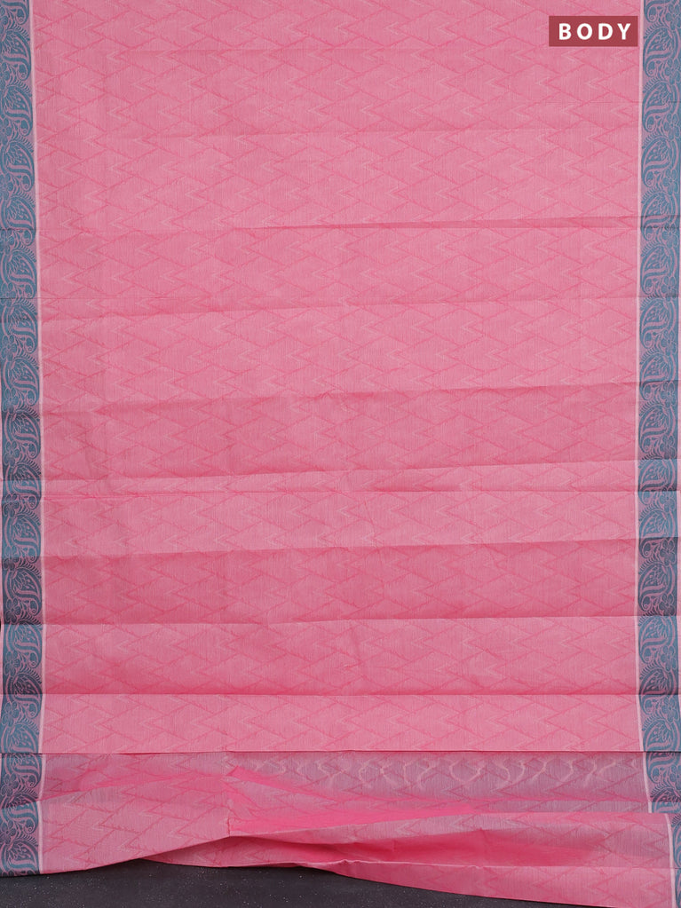Coimbatore cotton saree pink and blue with allover self emboss and thread woven border