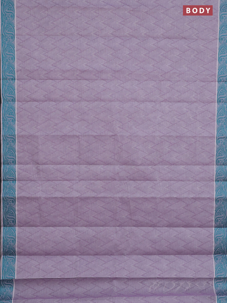 Coimbatore cotton saree pastel lavender and teal green with allover self emboss and thread woven border