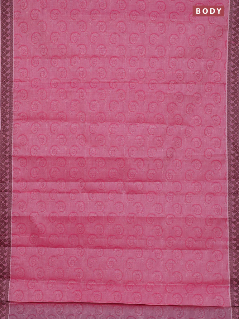 Coimbatore cotton saree pastel pink and maroon with allover self emboss and thread woven border