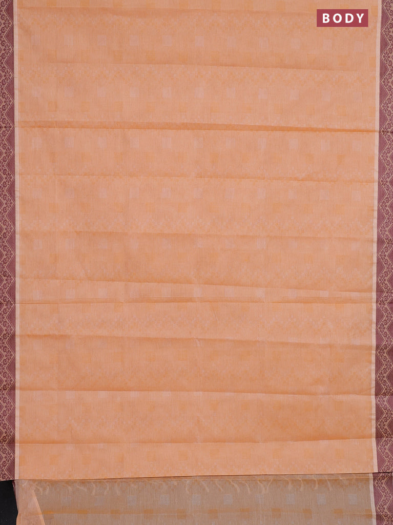 Coimbatore cotton saree pale orange and coffee brown with allover self emboss and thread woven border