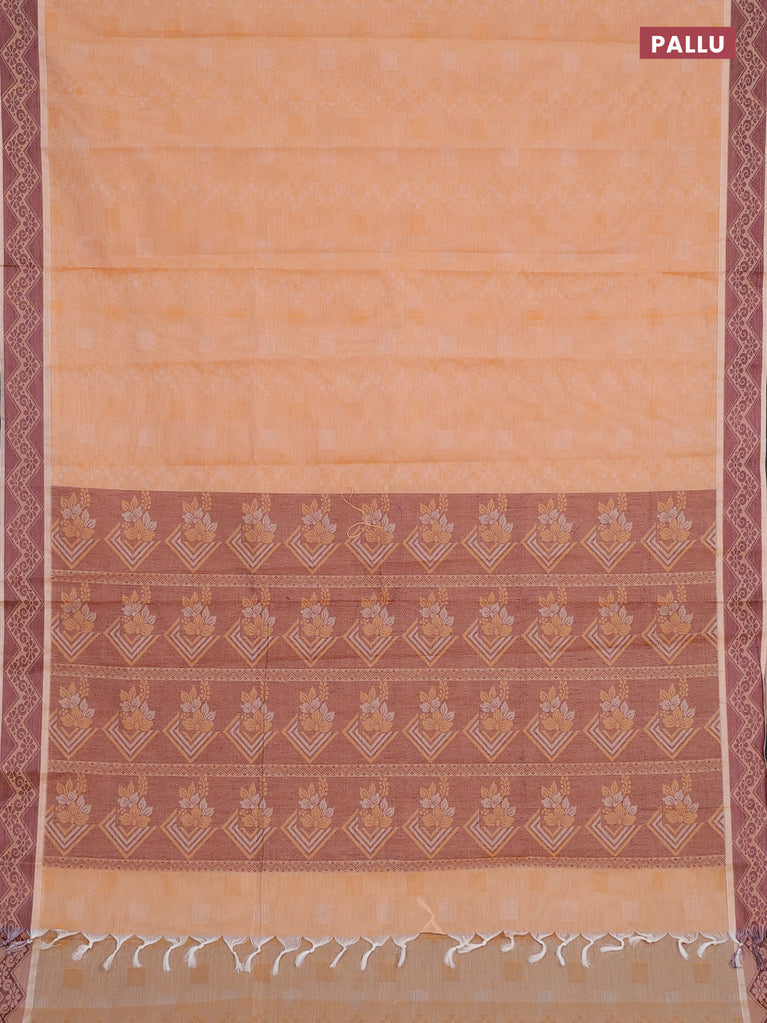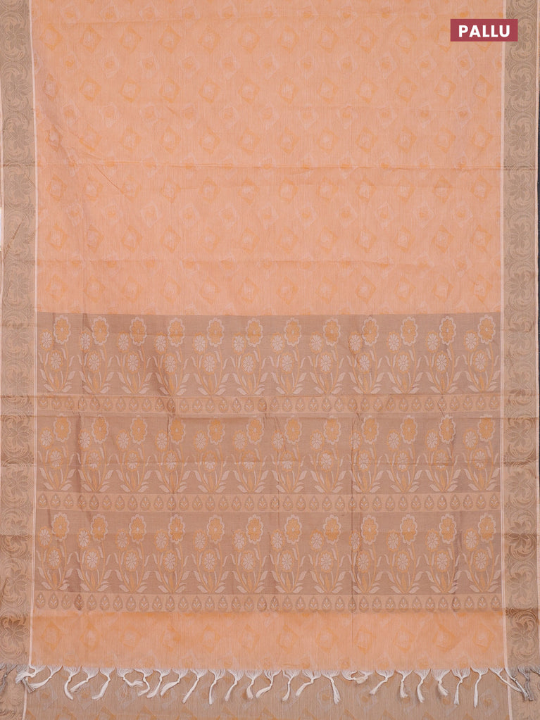 Coimbatore cotton saree pale orange and beige with allover self emboss and thread woven border